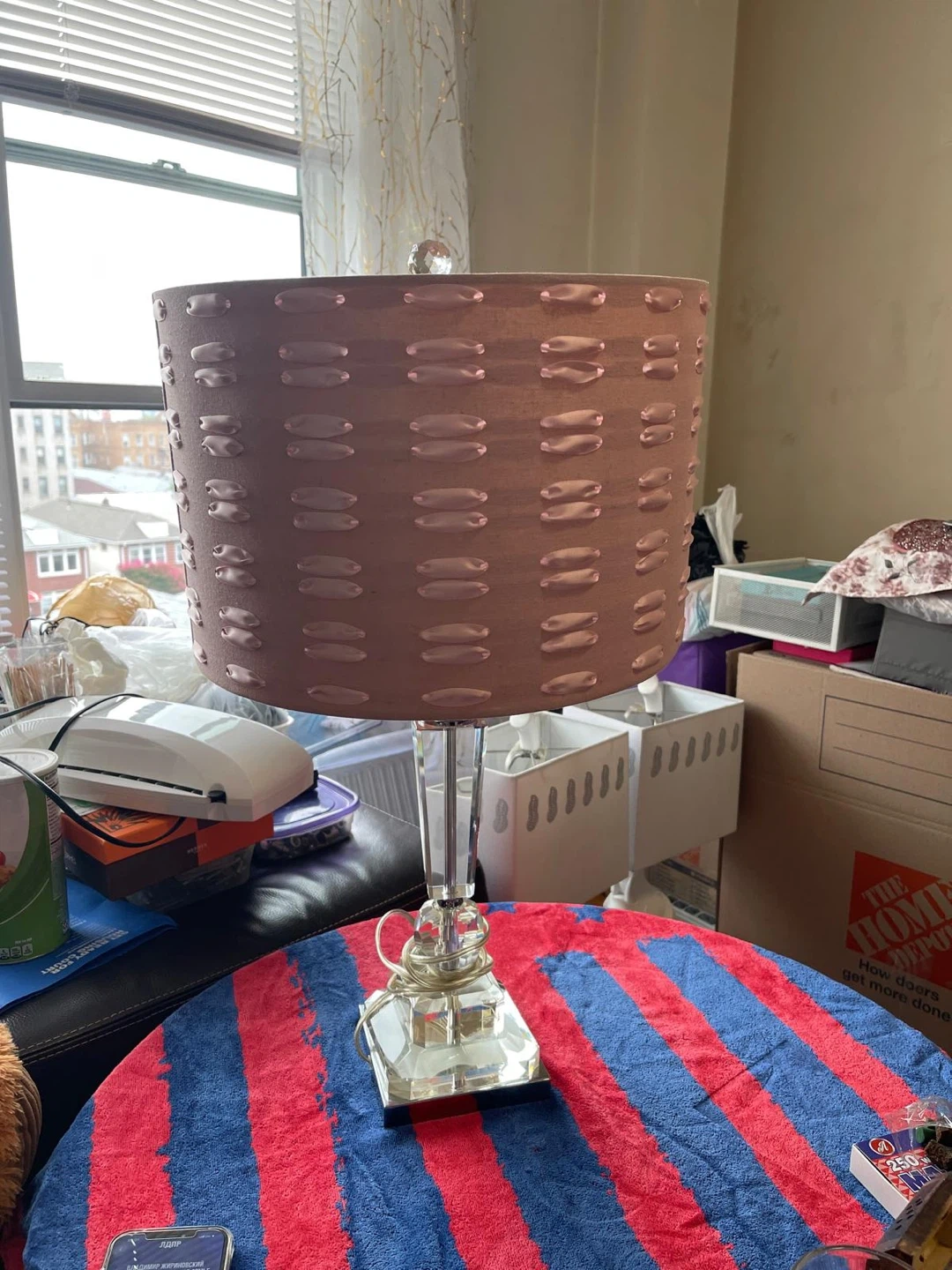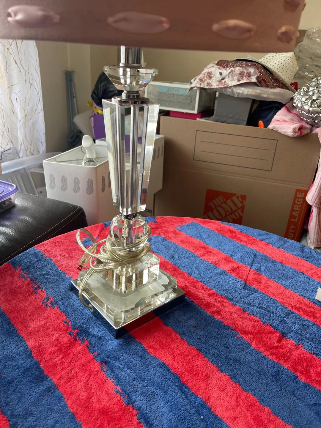 14Selling a beautiful crystal table lamp with a unique pink shade. It adds a touch of elegance to any room! The lamp features a crystal base and a stylish pink shade that diffuses light softly. It's in great condition and ready to brighten up your space