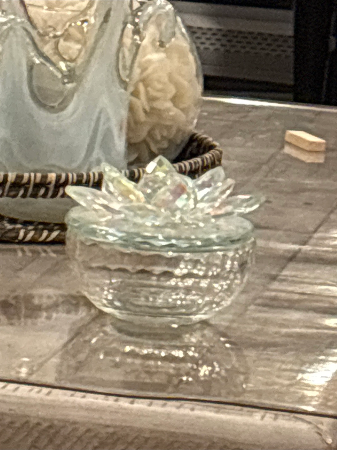Selling a beautiful crystal trinket dish with a lid! It's in great condition and would be perfect for storing jewelry or other small items. The crystal design adds a touch of elegance to any space