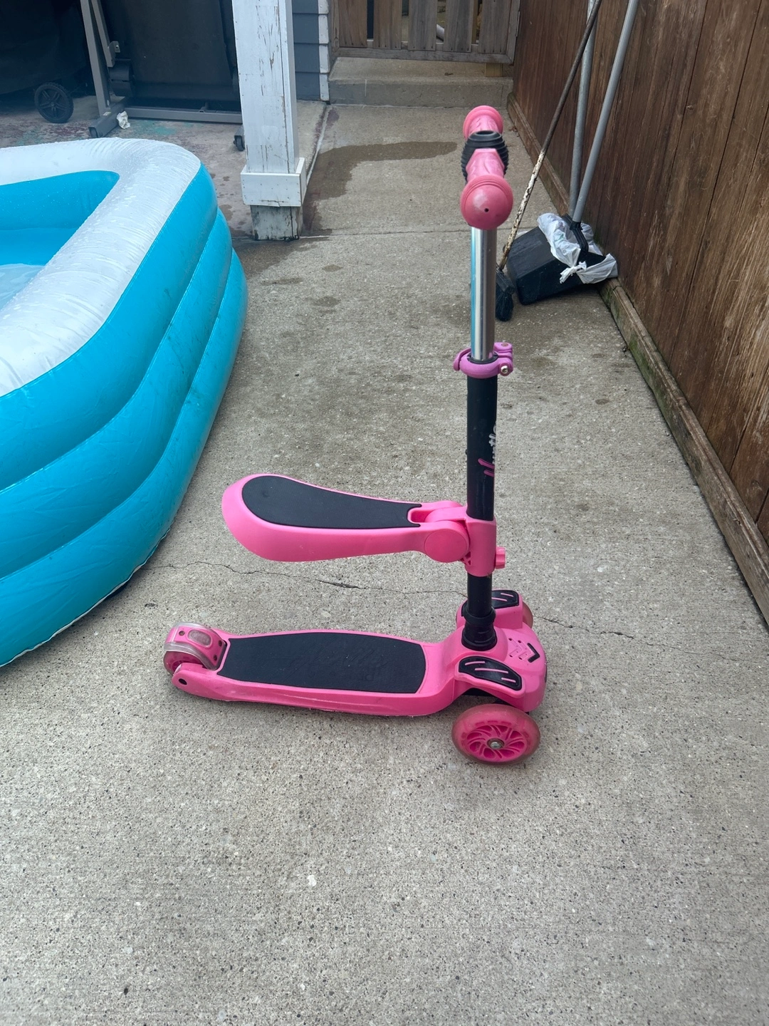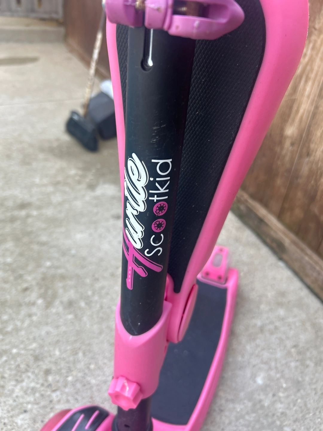 Selling a Hurtle 3-wheeled scooter in pink! Great for kids who are learning to scoot. It's in good condition and ready for a new home. This scooter is easy to maneuver and provides a fun way for kids to be active