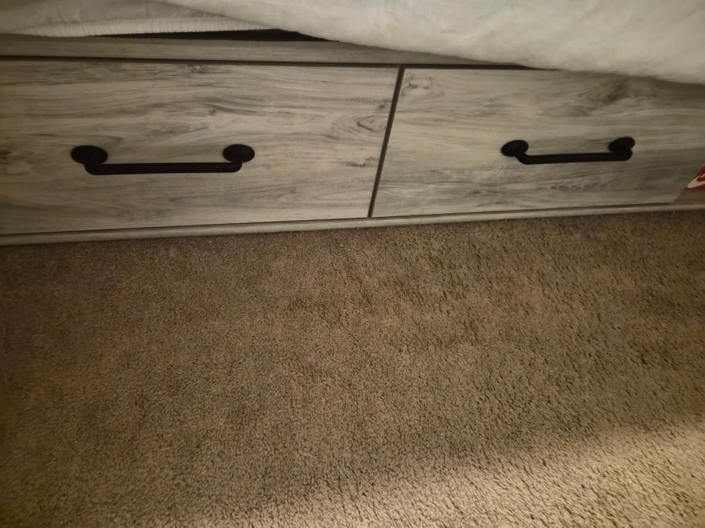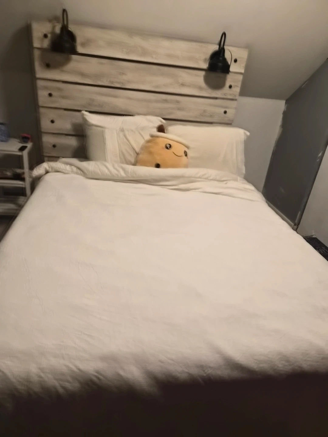 Pick Up Required! This rustic white wood headboard has a unique plank design with two integrated black metal lights. It also features four built-in drawers with black pull handles for convenient storage. It's perfect for adding a cozy, functional touch to your bedroom!
