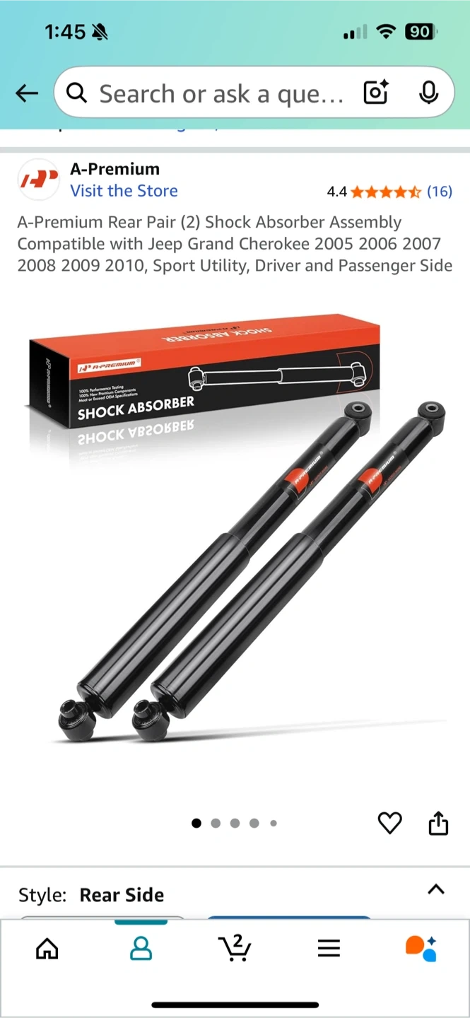 Selling a pair of A-Premium rear shock absorbers. These are compatible with Jeep Grand Cherokee models from 2005-2010, specifically the Sport Utility, Driver, and Passenger Side versions. They are designed for the rear side of the vehicle.