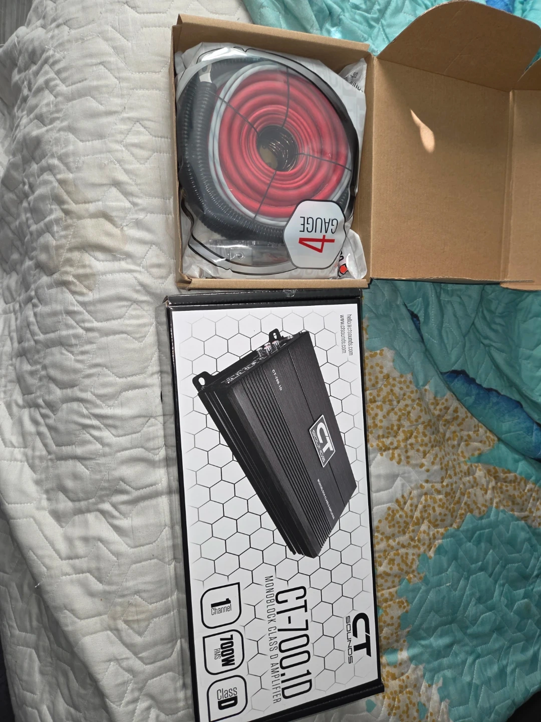 60Selling a CT Sounds CT-700.1D Monoblock Class D Amplifier. It comes with a 4 gauge wire. It's in great condition and ready to boost your car audio! And 2 10inch pioneer kickers in the box