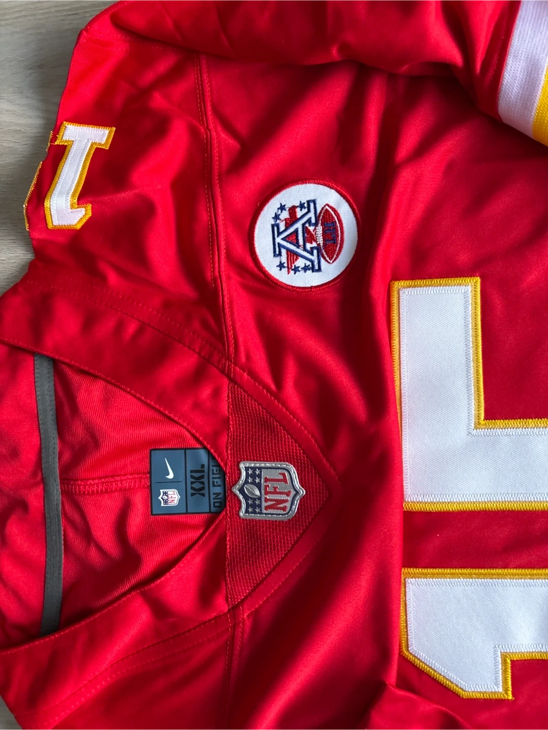 Selling new never used Kansas City Chiefs jersey with Mahomes' number 15 on it! The size is XXL. Great for any Chiefs fan!
