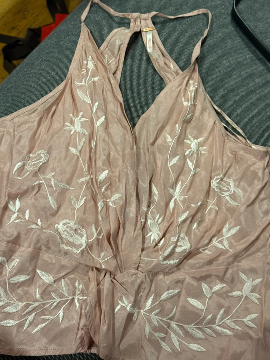 FREE PEOPLE Pink Embroidered Halterneck Tank Top
