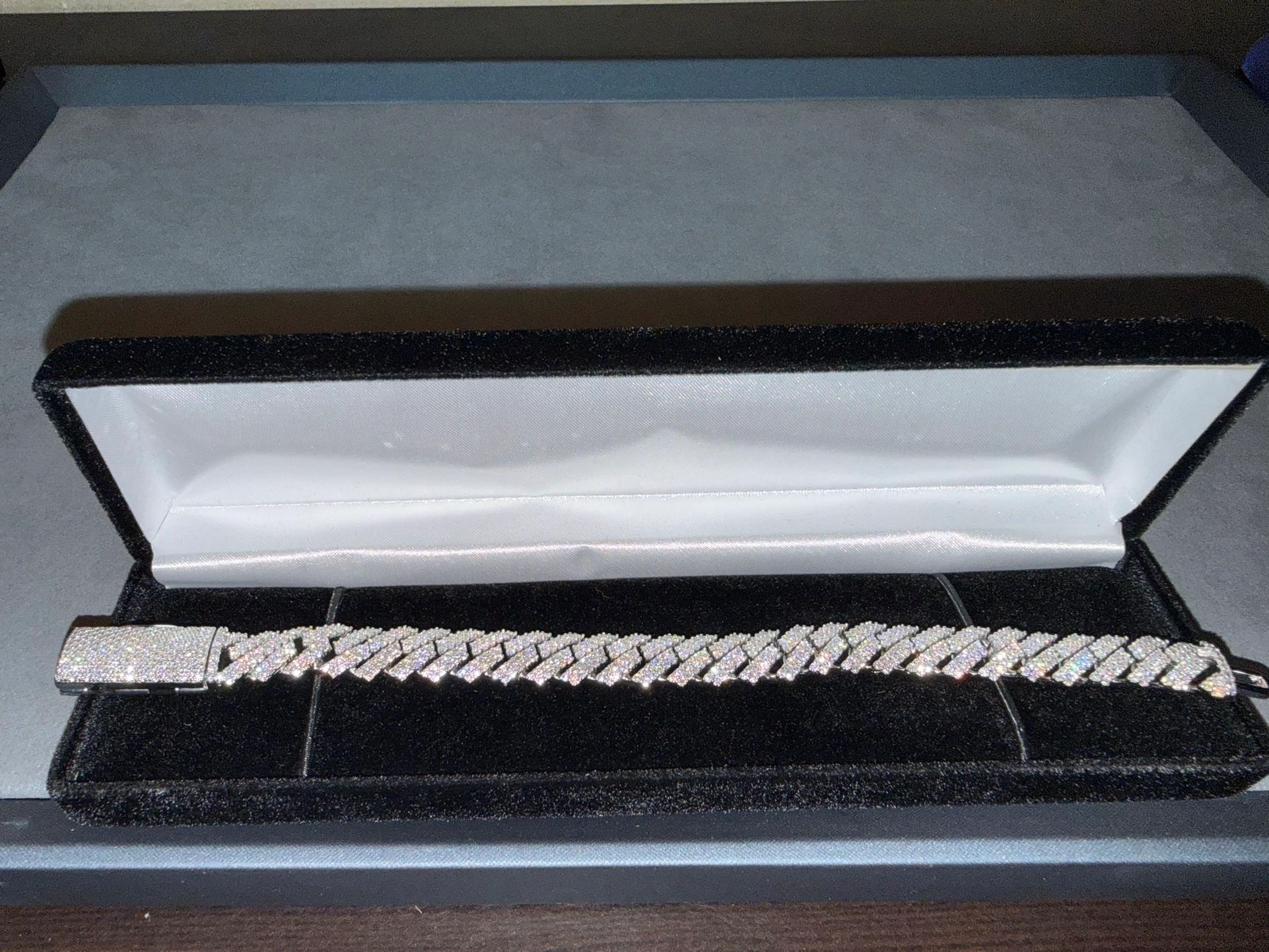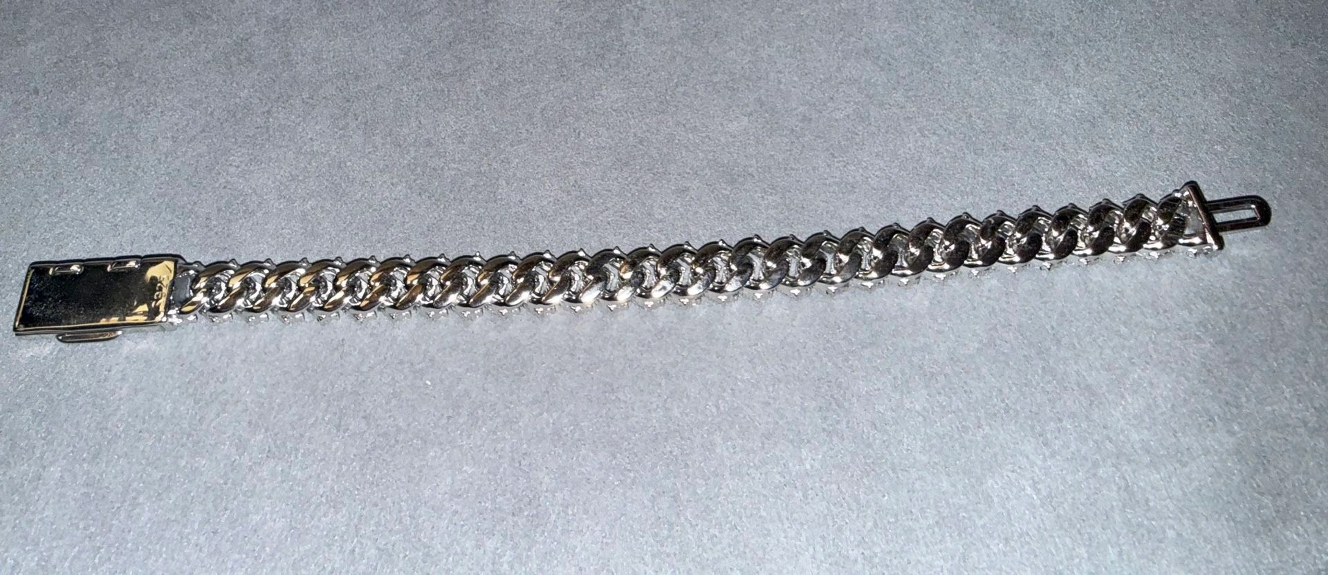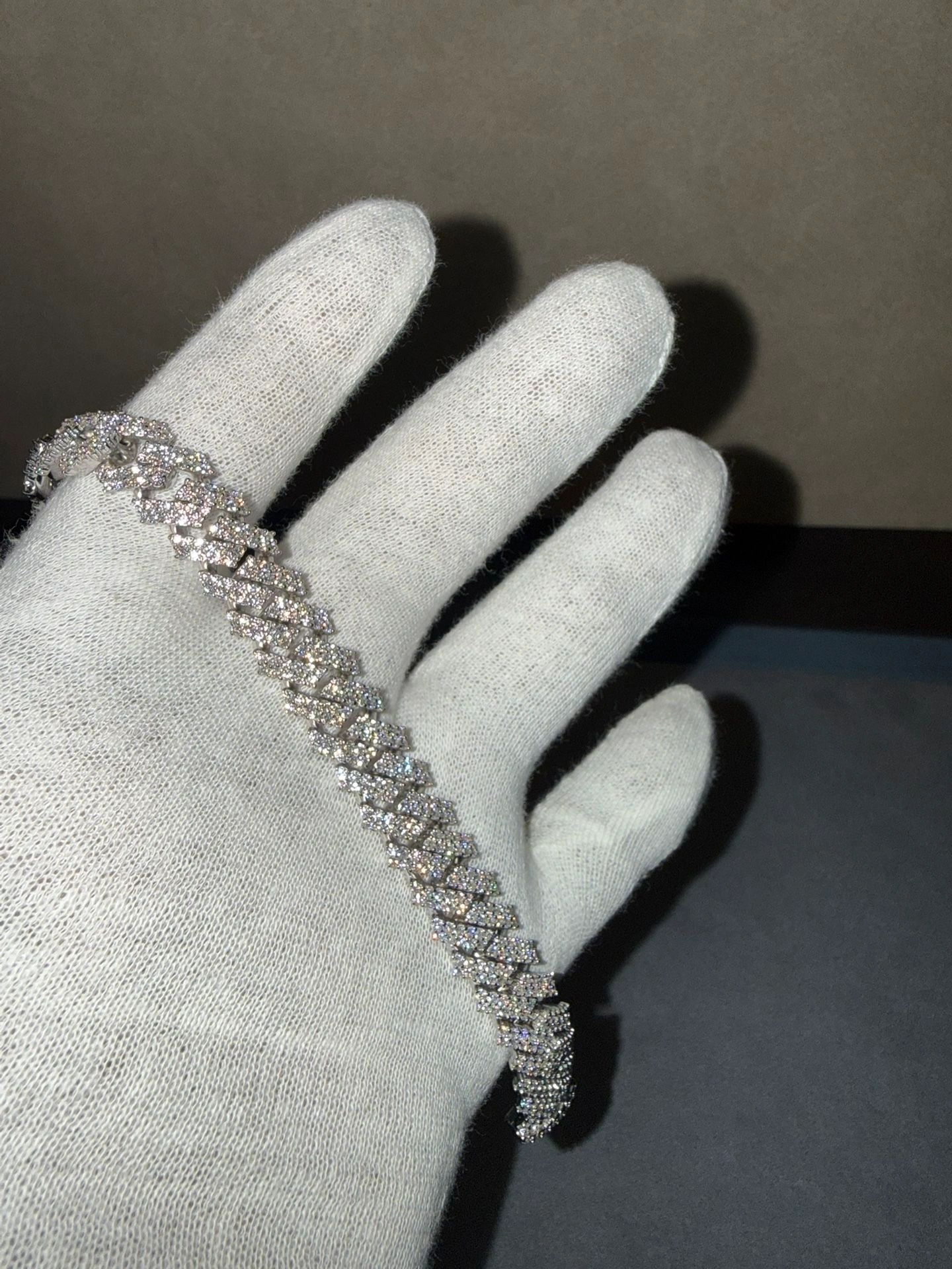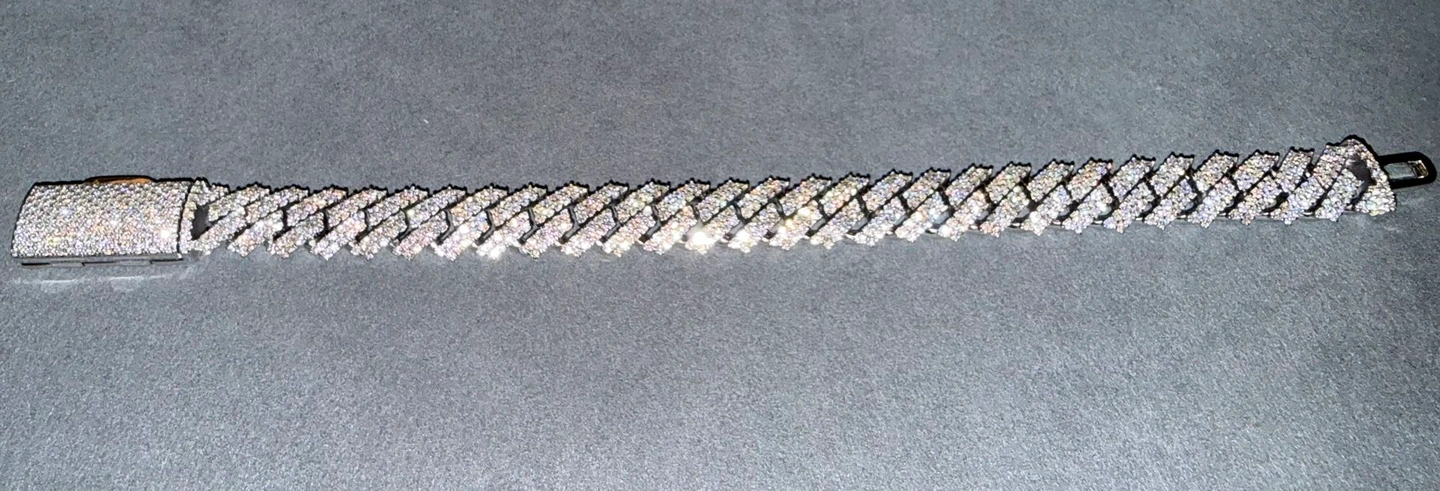 Highly crafted 925 Sterling Silver Iced out White Gold/Rhodium plated Cuban Link Bracelet, This is a sharp 12mm Cuban Link Bracelet with moissanite lab diamonds. Good quality is not cheap and my price beats others