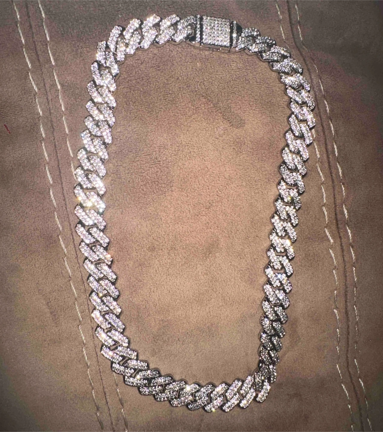 18Selling a stylish Cuban link chain in silver! This eye-catching piece is perfect for adding some flair to your look. It's in great condition and ready to wear has a little bit of rust on the silver
