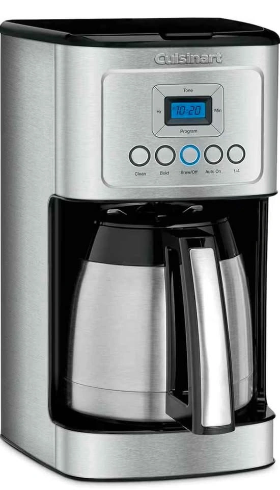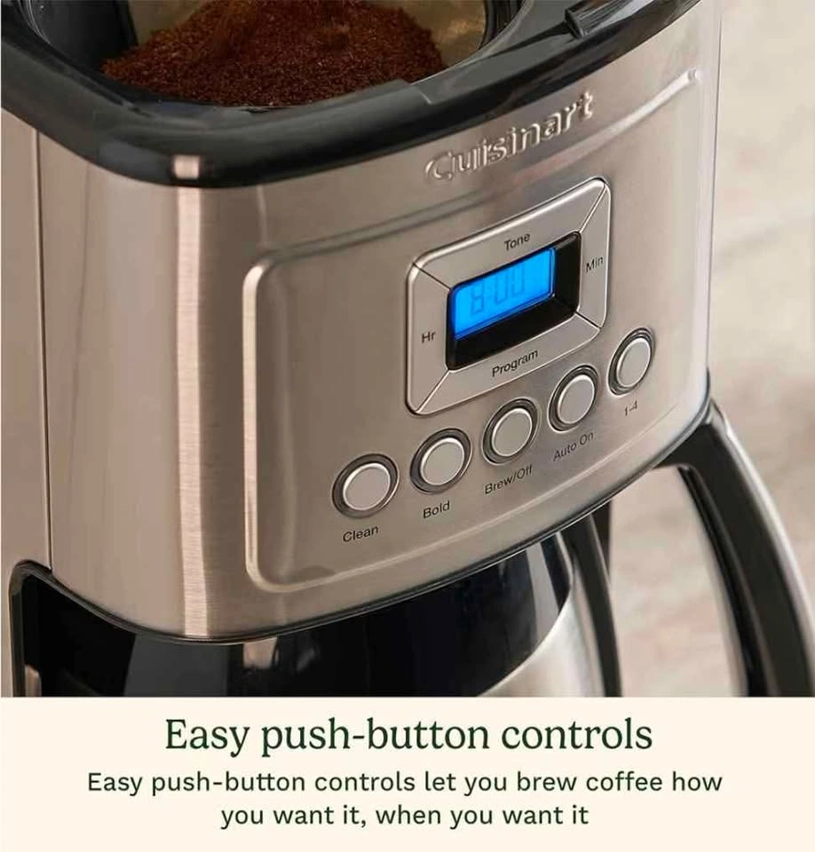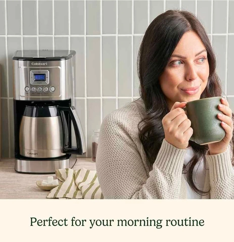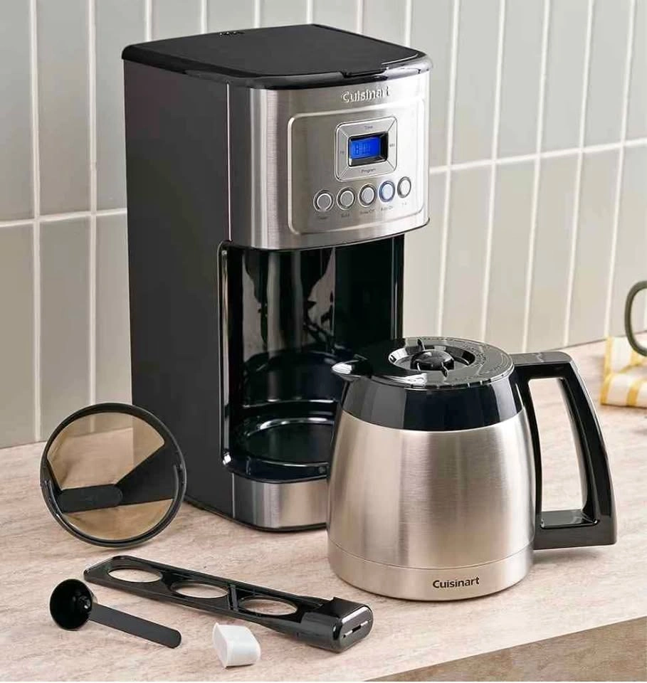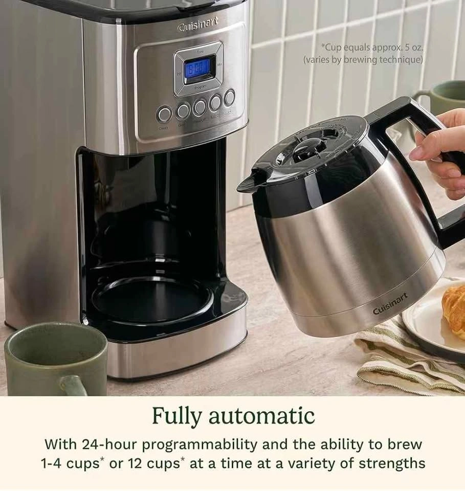 Brand new in the box! Never used! Brand: Cuisinart Capacity: 12 Cups Color: Silver Product Dimensions: 7.75"D x 9"W x 14.25"H Special Feature: Programmable Coffee Maker Type: Drip Coffee Machine Fully automatic Cuisinart 12-Cup* Coffee Maker with 24-hour programmability, self-clean, 1-4 cup setting, optional ready alert tone, and Brew Pause convenience. Hotter coffee with expert coffeemaking technology to ensure hotter coffee temperature without sacrificing flavor or quality. This Cuisinart coffee machine tailors the strength of your brew with Brew Strength Control for regular or bold settings. Savor the rich flavors with the included gold-tone and charcoal water filters. 12-CUP* CAPACITY: *Cup equals approx. 5 oz. (varies by brewing technique). This Cuisinart coffee maker features a backlit LCD that’s easy to read, a ready tone that can be turned on or off, and an indicator light that signals when it’s time to decalcify.