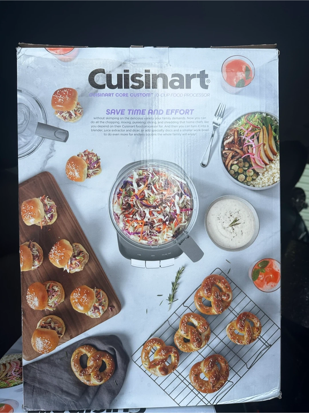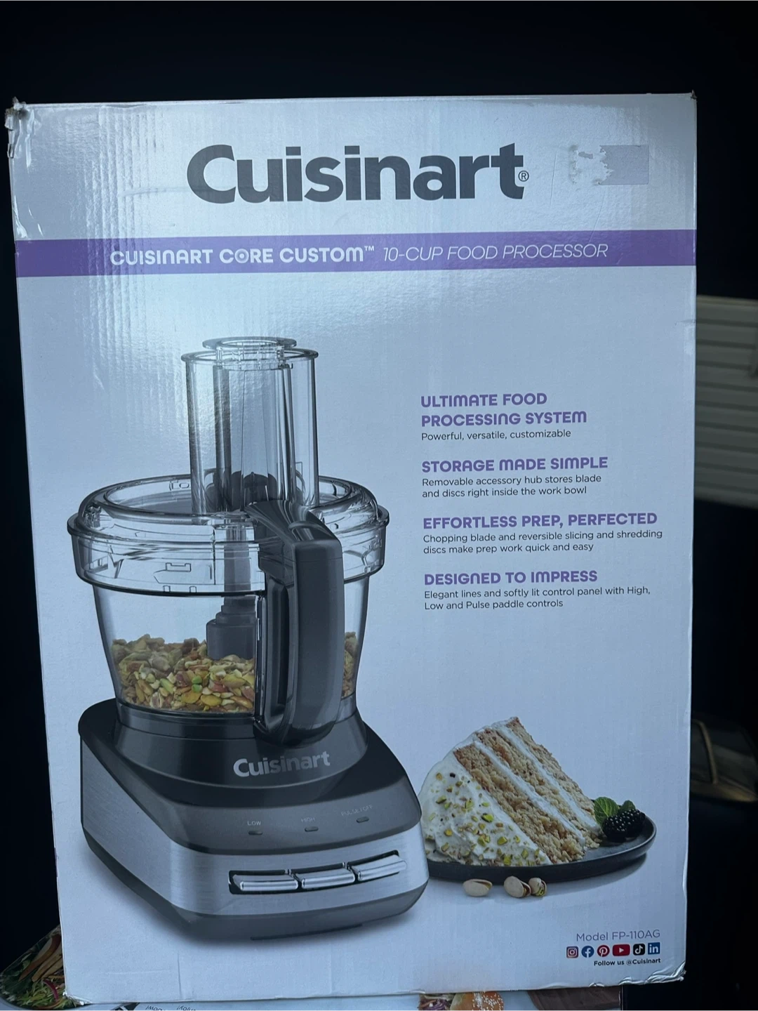 Selling a Cuisinart Core Custom 10-Cup Food Processor! It's an ultimate food processing system that's powerful, versatile, and customizable. The storage is made simple with a removable accessory hub that stores blade and discs right inside the work bowl. It's designed to impress with elegant lines and softly lit control panel with High, Low, and Pulse paddle controls