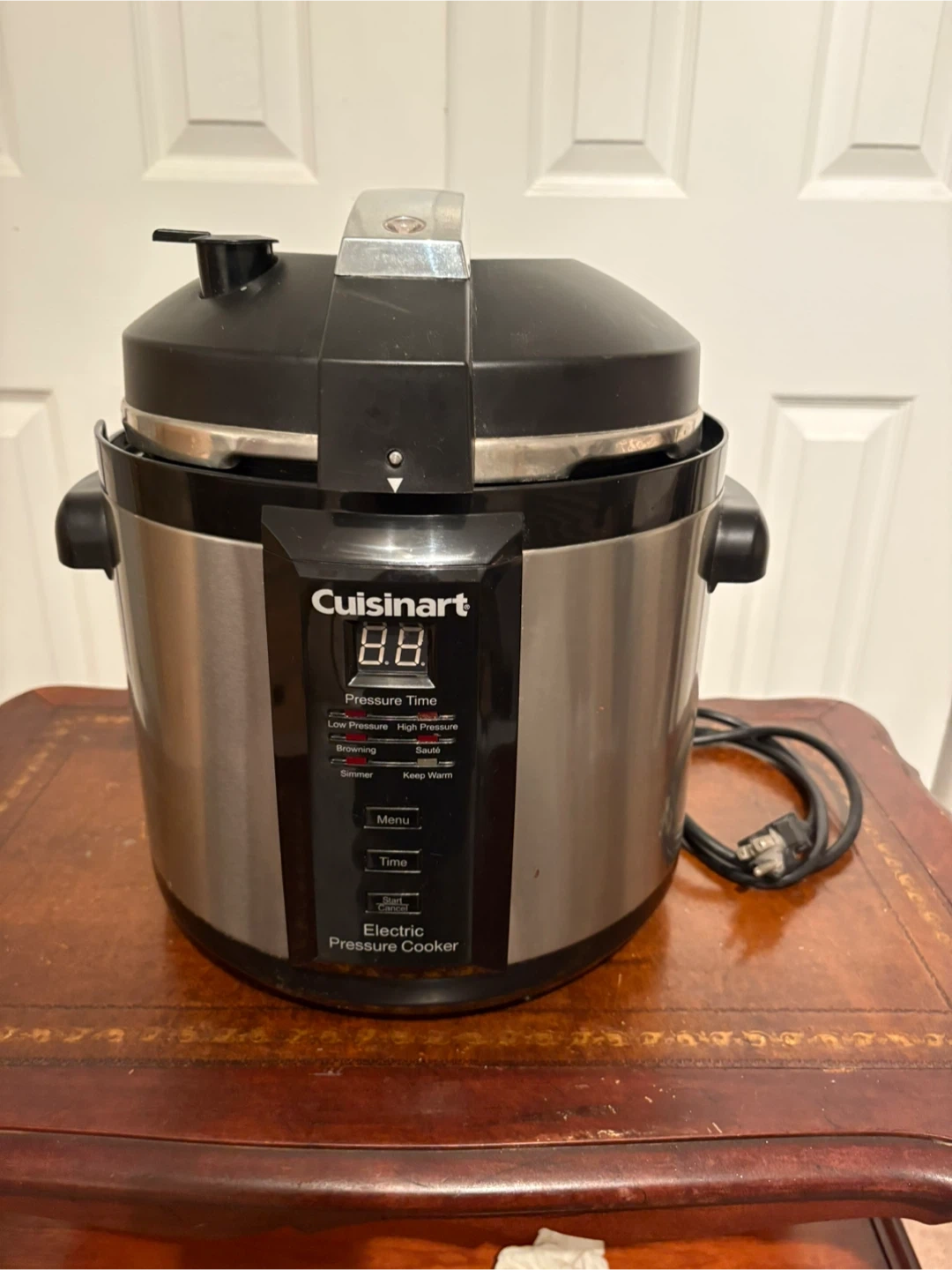 10Selling a Cuisinart electric pressure cooker! It has a stainless steel exterior. It can hold up to 16 cups. Perfect for making quick and easy meals!