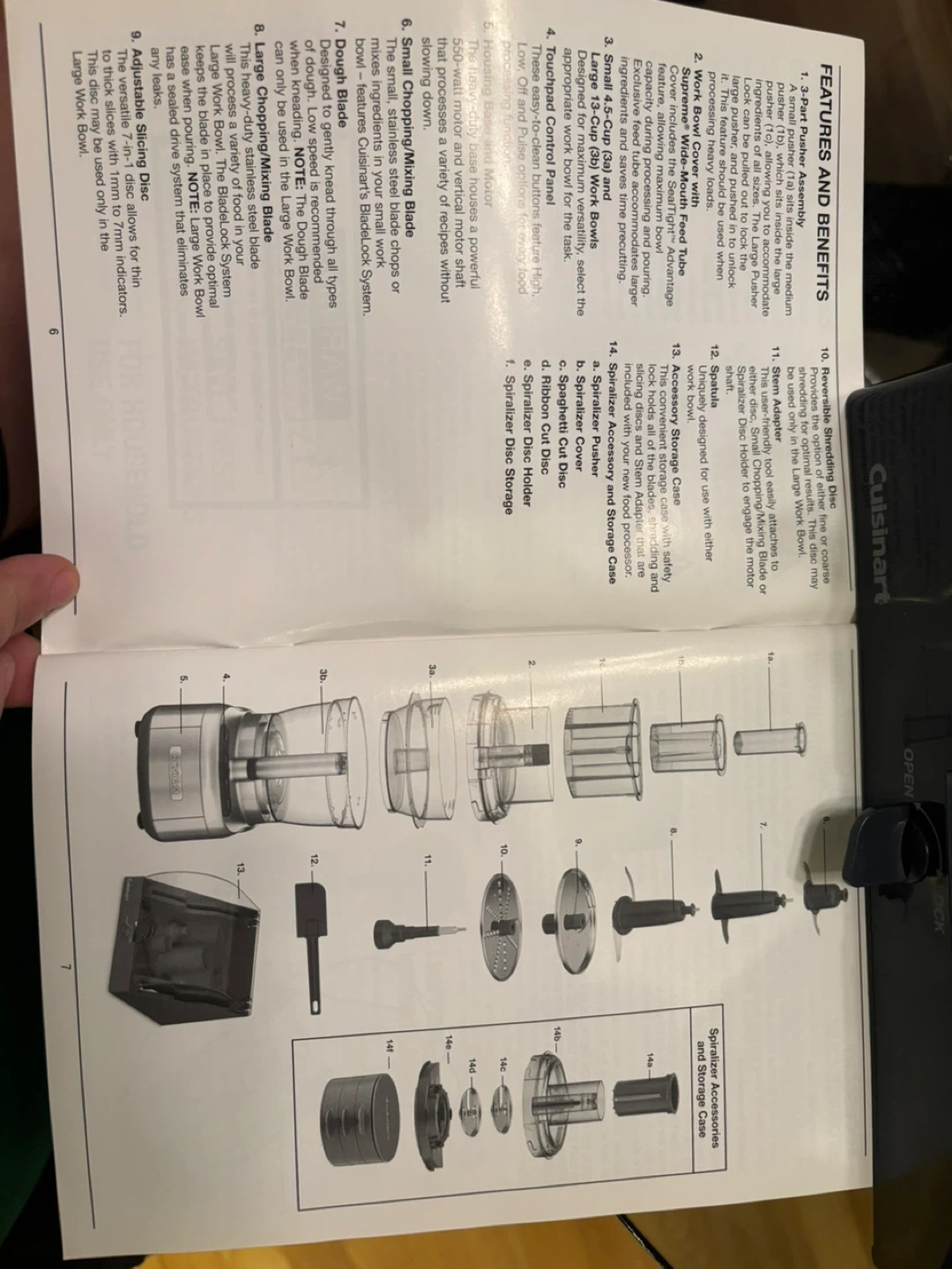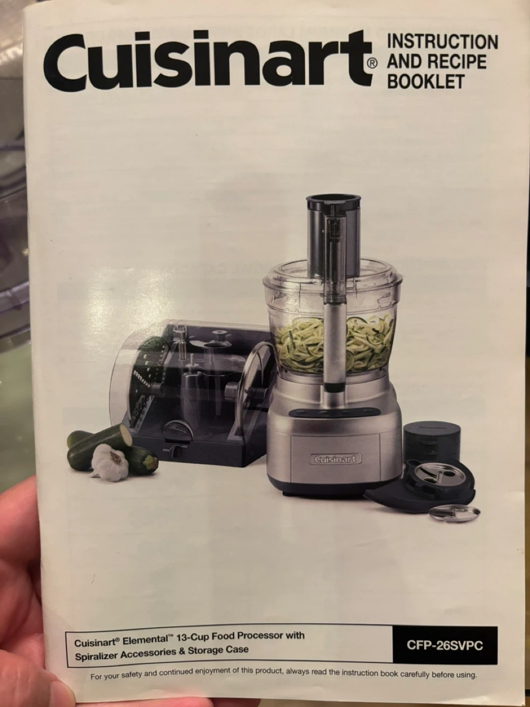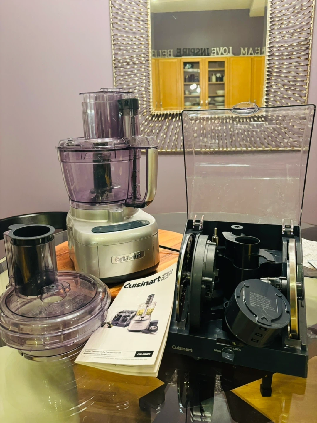 46Moving sale - Priority to prepayment or first pick up. Selling a Cuisinart Elemental 13-Cup Food Processor with Spiralizer Accessories & Storage Case (CFP-26SVPC). It includes the instruction and recipe booklet. It features a 13-cup work bowl, a small 4.5-cup bowl, and spiralizer accessories with storage case Priority for fast pickup