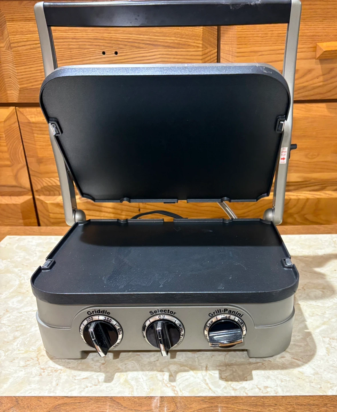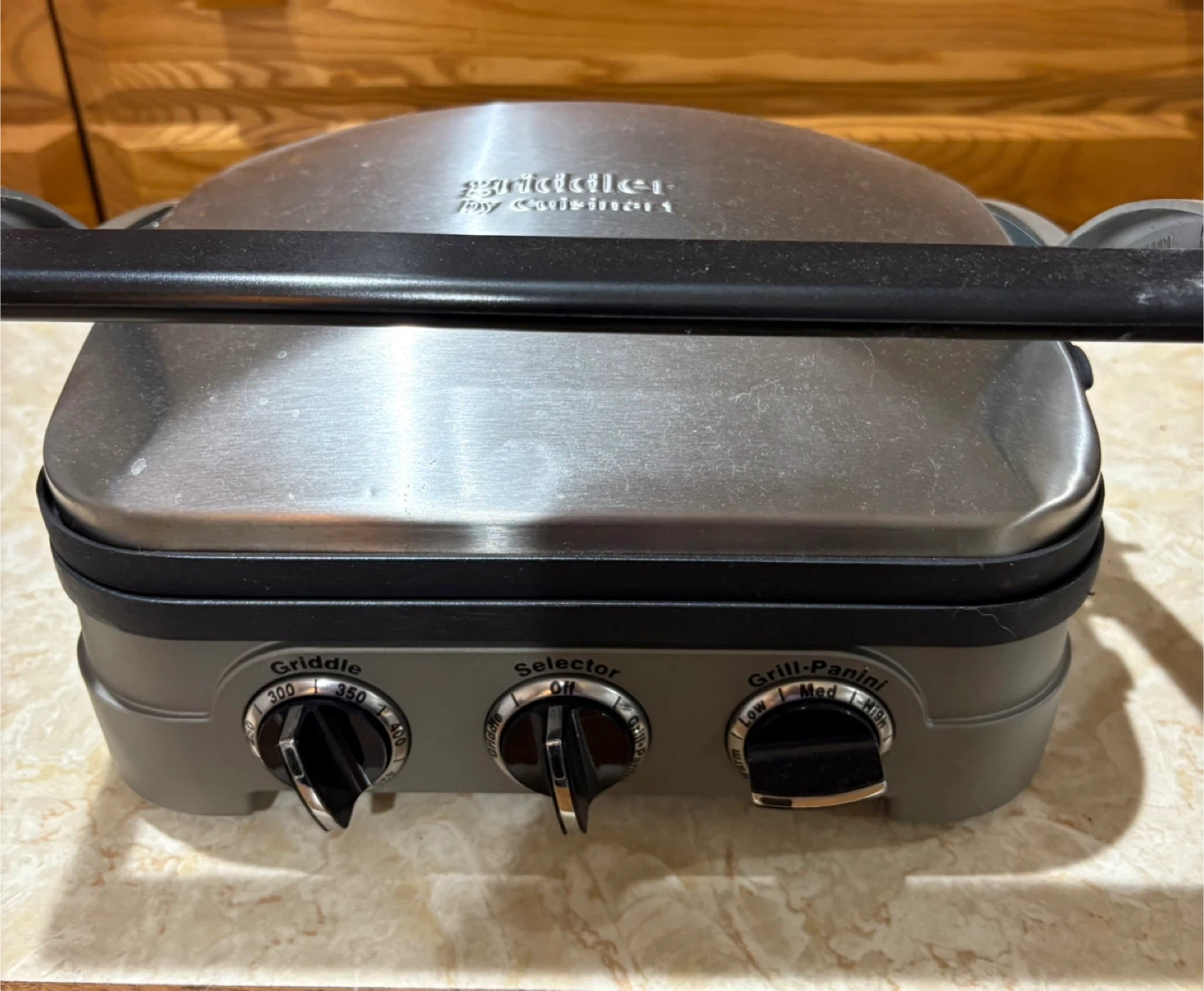 I'm selling a Cuisinart Griddler Five. It functions as a contact grill, panini press, full grill, full griddle, and half grill/half griddle. It has selector knobs for easy use and is in great condition!