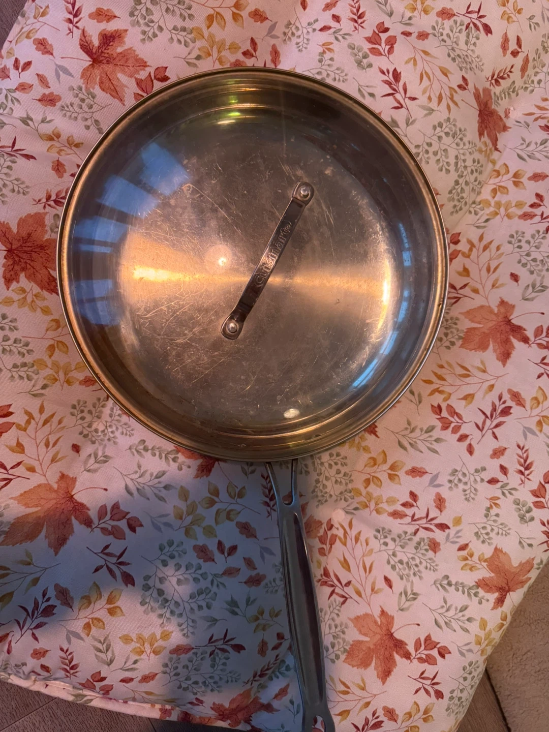Selling a Cuisinart stainless steel lid. It has some signs of use but the stainless steel is great quality. I don’t use it enough to justify the space. The same pan retails on Wayfair for $55 (discounted price from $84!).
