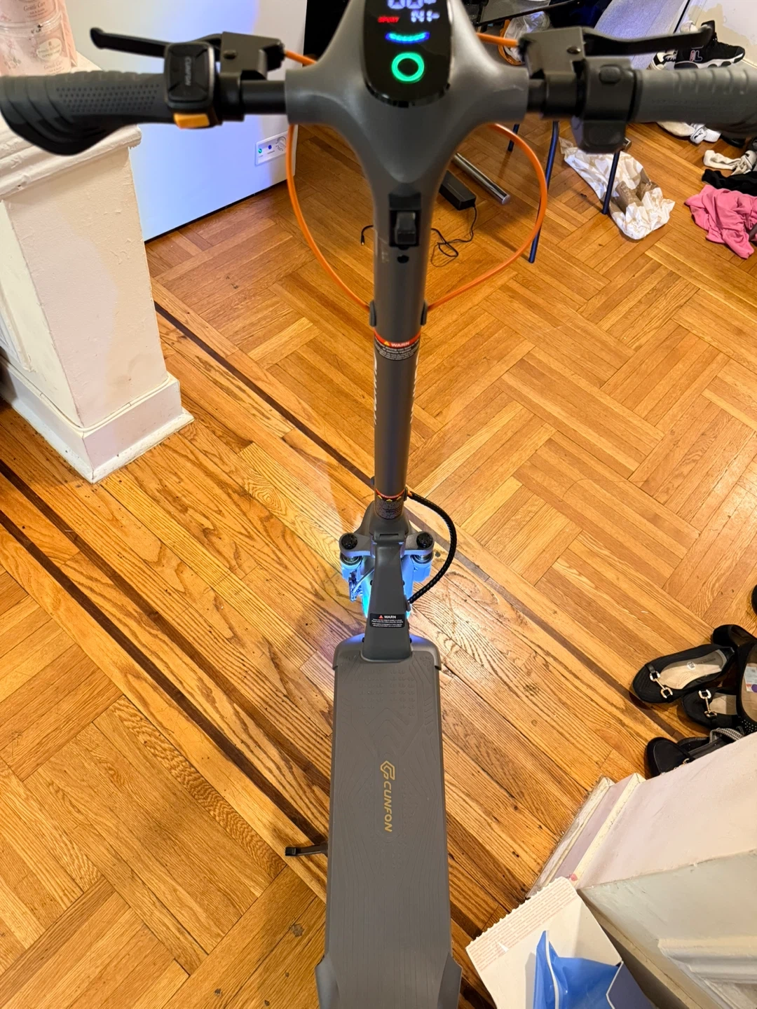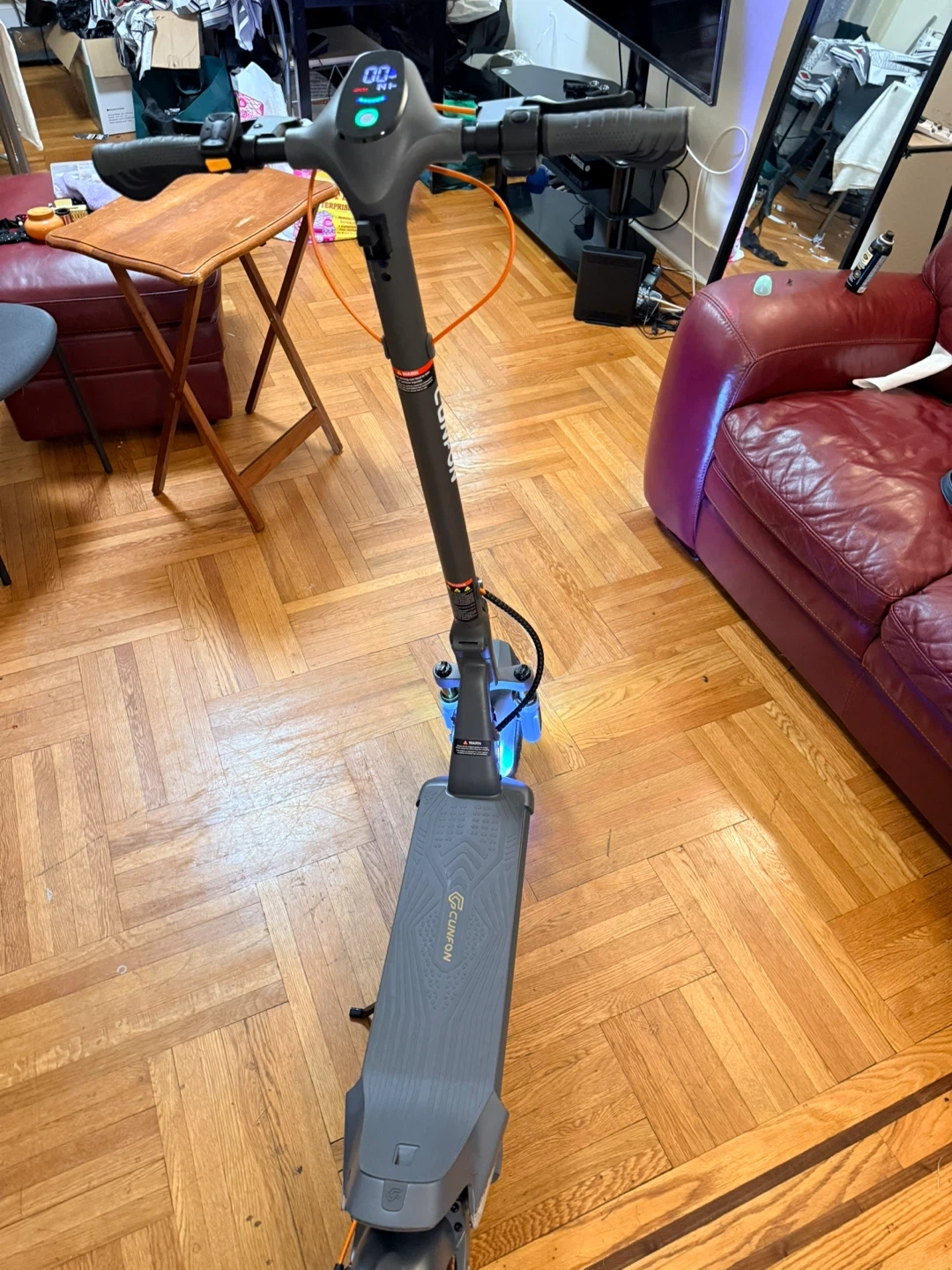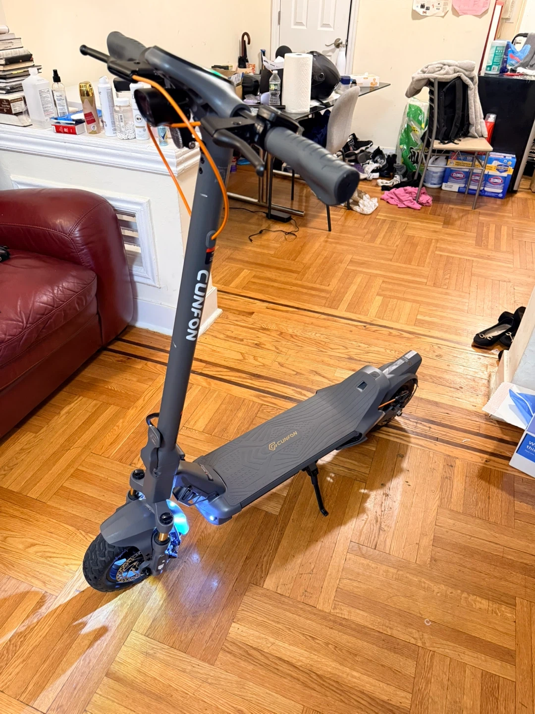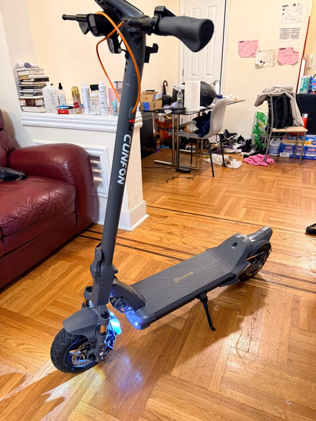 Selling a CunFon electric scooter! It's gray and looks like it's in good condition. Perfect for getting around town. It has finger print and cruise control Up 31MPH 50miles range 48V 18ah 1200W