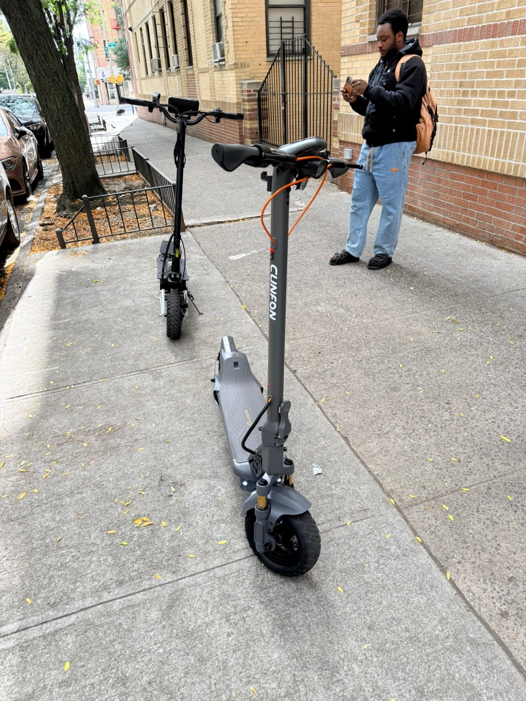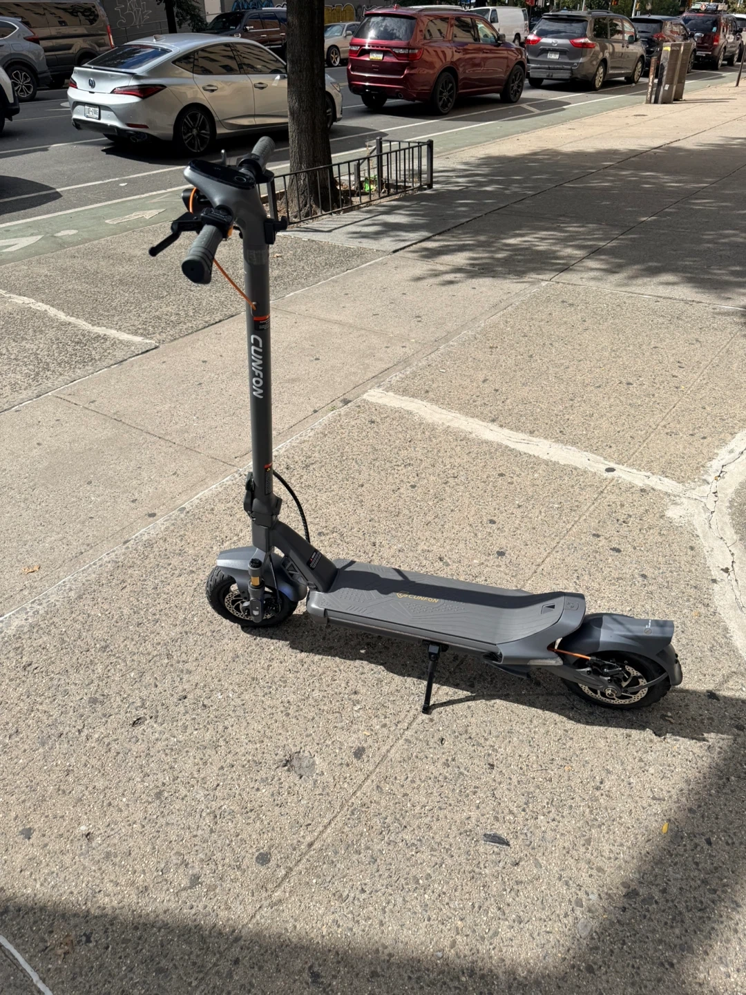 Selling a CUNFUN electric scooter in gray! It's in great condition and ready for a new owner. Perfect for getting around town 31MPH 50 miles range 1200w power 48V 18ah