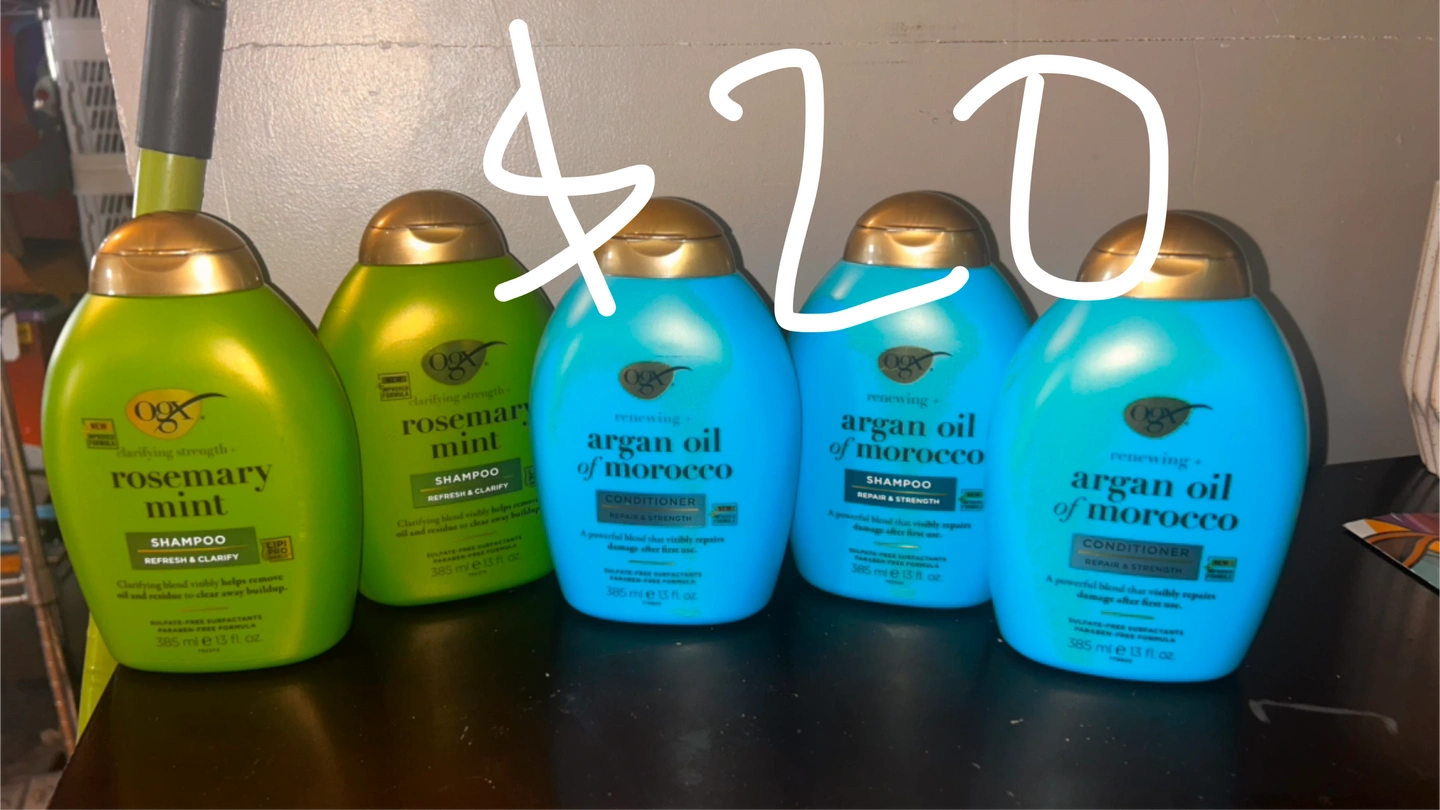 Includes L'Oreal Elvive Dream Lengths, OGX Rosemary Mint & Argan Oil of Morocco, and Dove Rejuvenate Pomegranate & Hibiscus