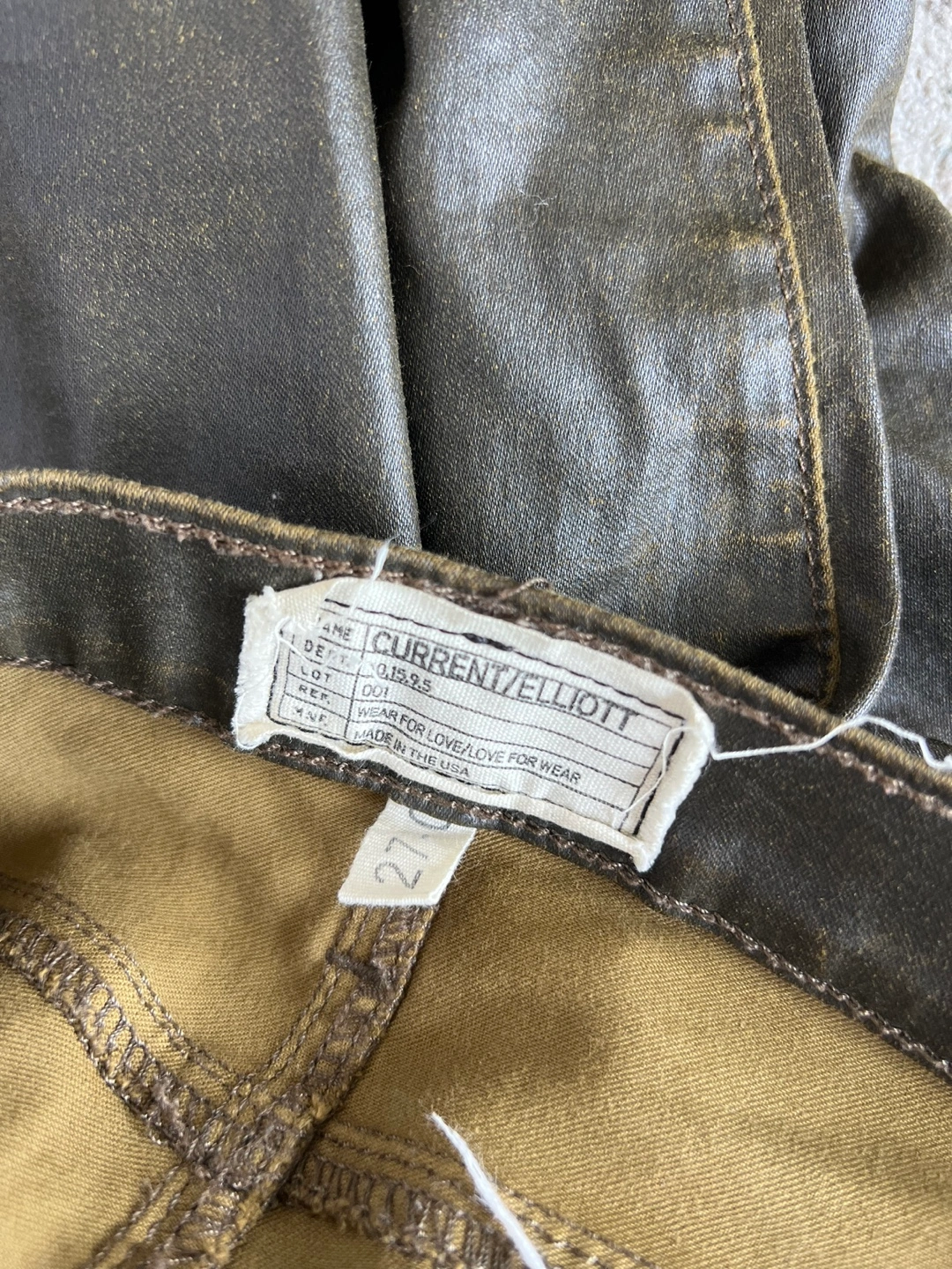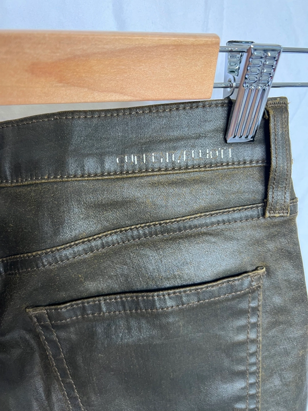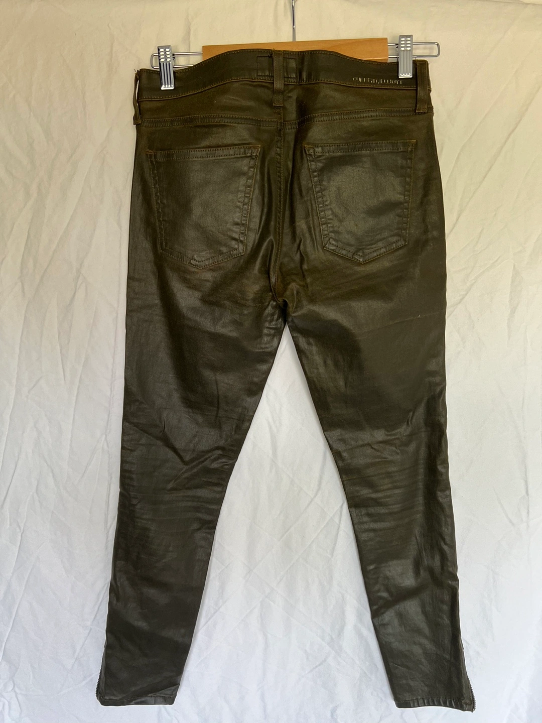 These jeans have a coated finish. They have fun accent zippers on the ankles and on the front pockets. Perfect mix of edge and fun π