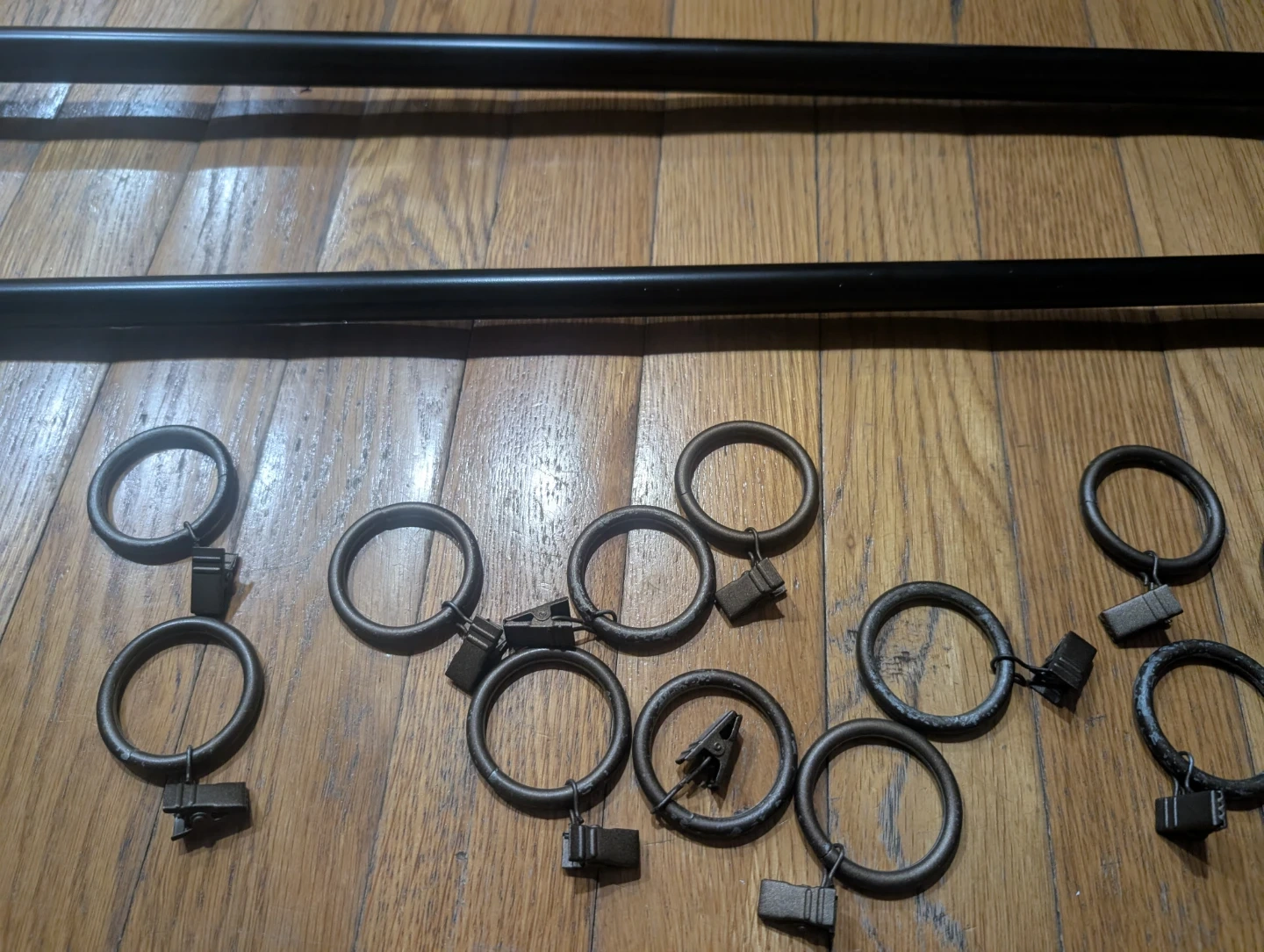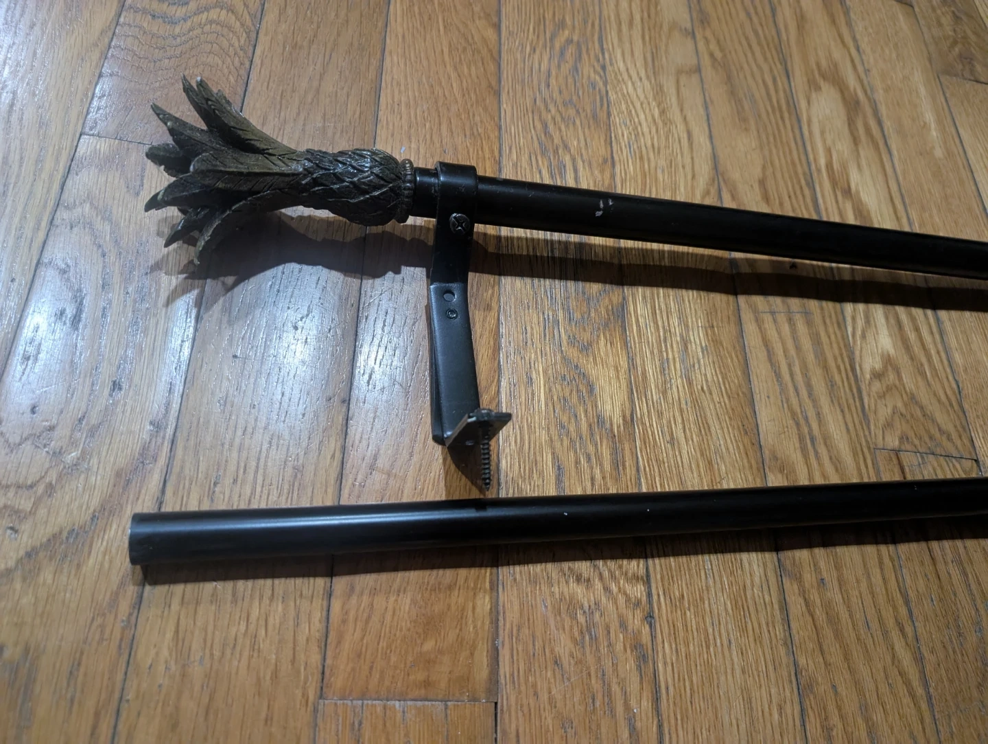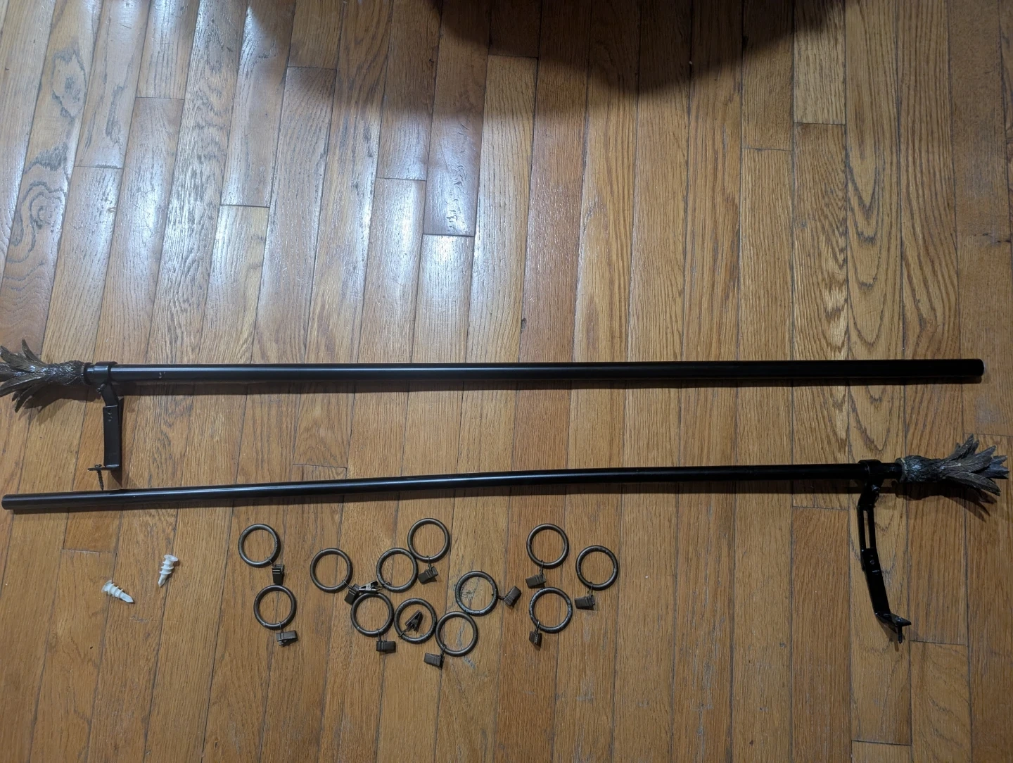 83Pick up in Brooklyn Dyker Heights, 11228. Cash only. Both attached together is 79" long Selling a set of curtain rods with unique pineapple finials! These rods are a dark color and come with the mounting hardware and rings you'll need to hang your curtains. They'll add a touch of tropical flair to any room.
