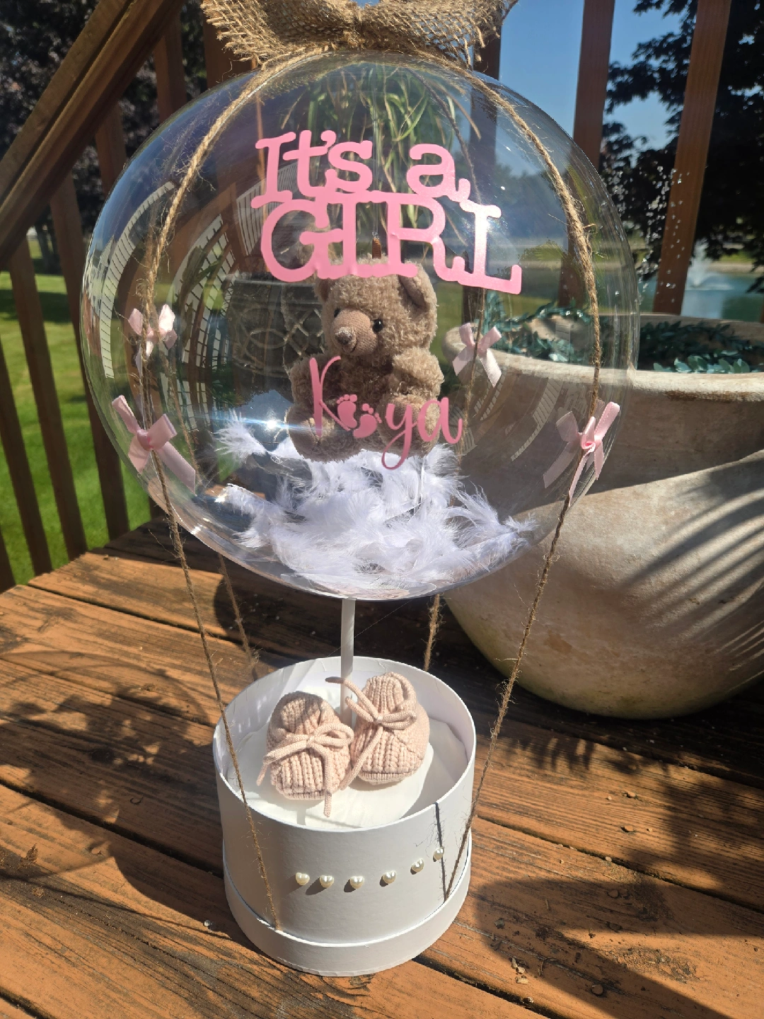 These are adorable custom balloon decorations, perfect for a baby shower! They each feature a different theme and color scheme, making them a unique and special touch for celebrating a new baby. These decorations are sure to add a whimsical and celebratory atmosphere to any baby shower