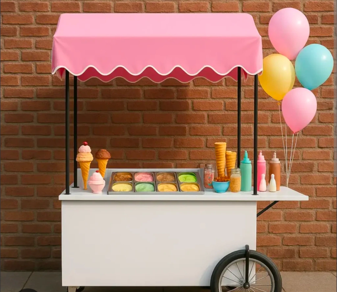 66Like New Condition - Heavy Duty Wooden Cart - 26" Pneumatic Wheels - Big Storage Space - Custom - Removable Wooden Canopy Shade - LED Lights and Bluetooth Speaker Built in - Large- Customizable Work Space Great to start your own business or to Promote your Restaurant - Company. * SERIOUS BUYERS AND PICK UP ONLY