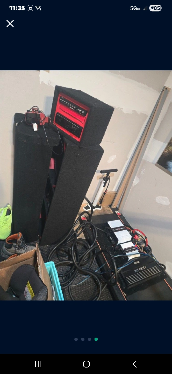0Selling a custom-built speaker system. It includes multiple speakers and what appears to be a head unit. The system also includes an amplifier labeled 'NIFONICS'. Great for someone looking to upgrade their sound setup!
