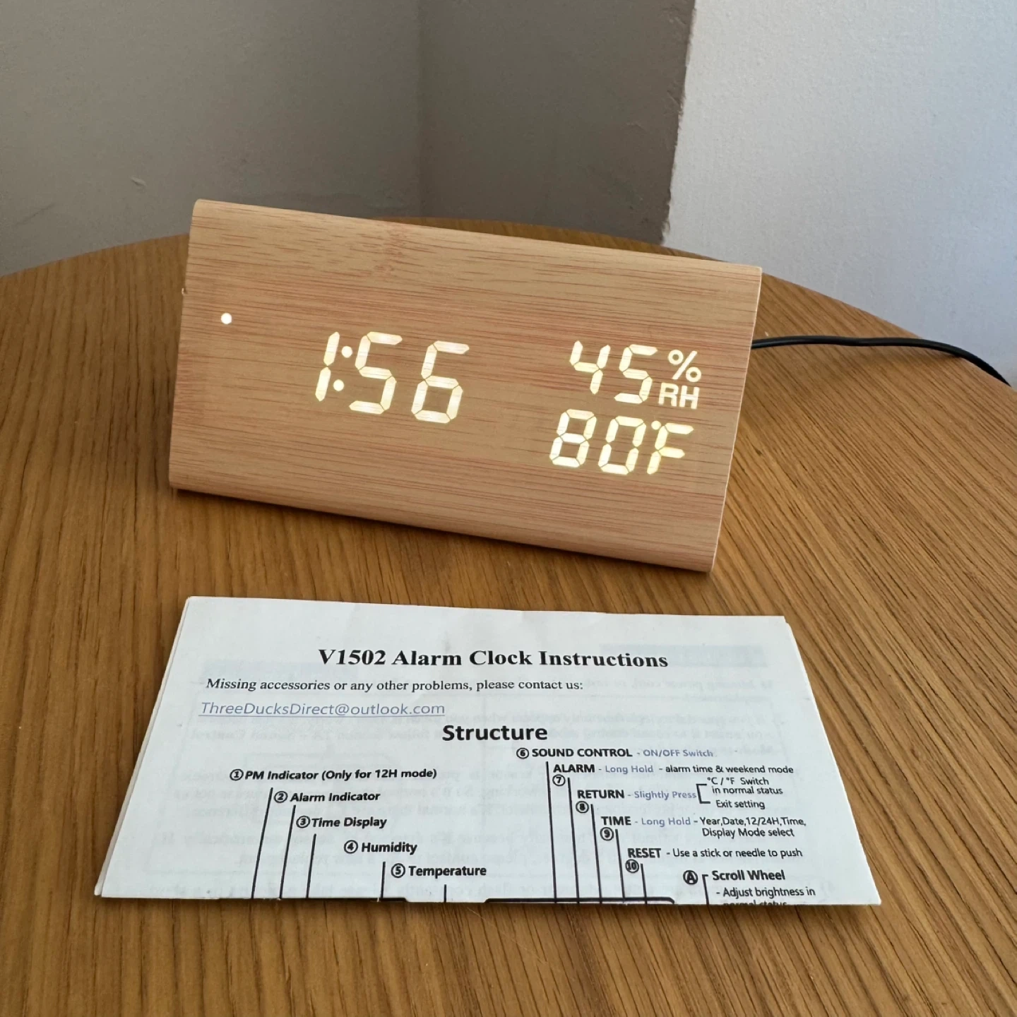 Selling a cute and sleek alarm clock. It displays the time, humidity, and temperature. Instructions are included!