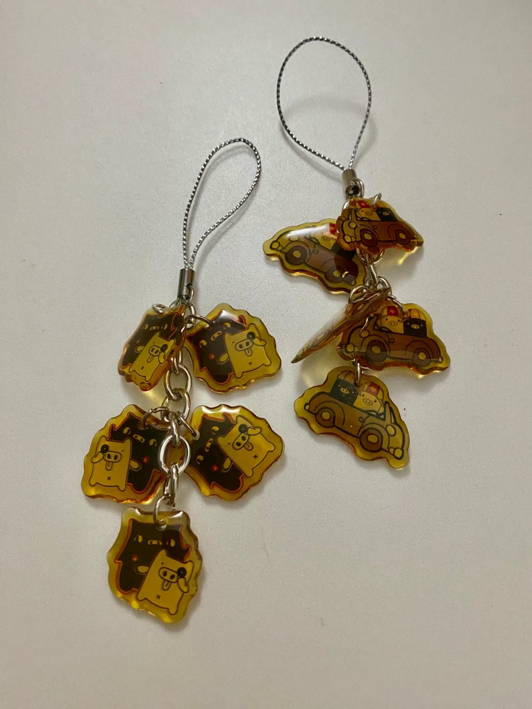 334Here are two adorable keychains featuring cartoon characters! They have a unique design with a silver string for easy attachment. Perfect for adding a touch of fun to your keys or bag