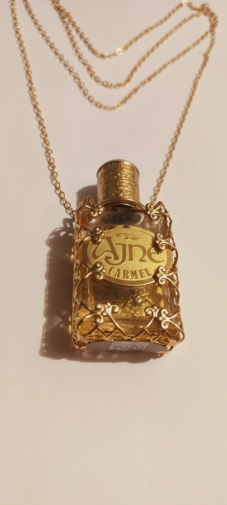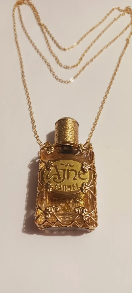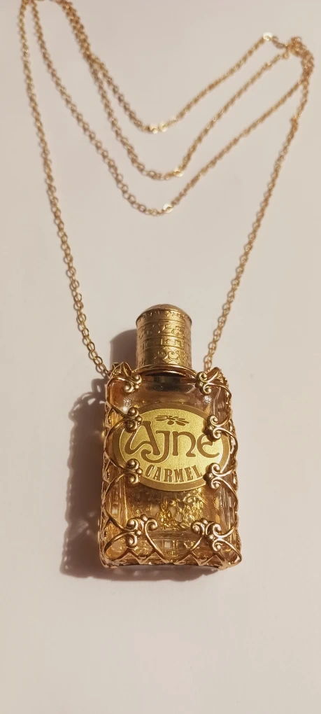 1000+Selling a beautiful Ajne perfume bottle pendant with necklace. The bottle is encased in a delicate gold-tone wire frame and hangs from a multi-strand gold chain. It's a unique piece of jewelry. The perfume bottle is empty. Excellent condition. ALL MY PRICES ARE NEGOTIABLE !!