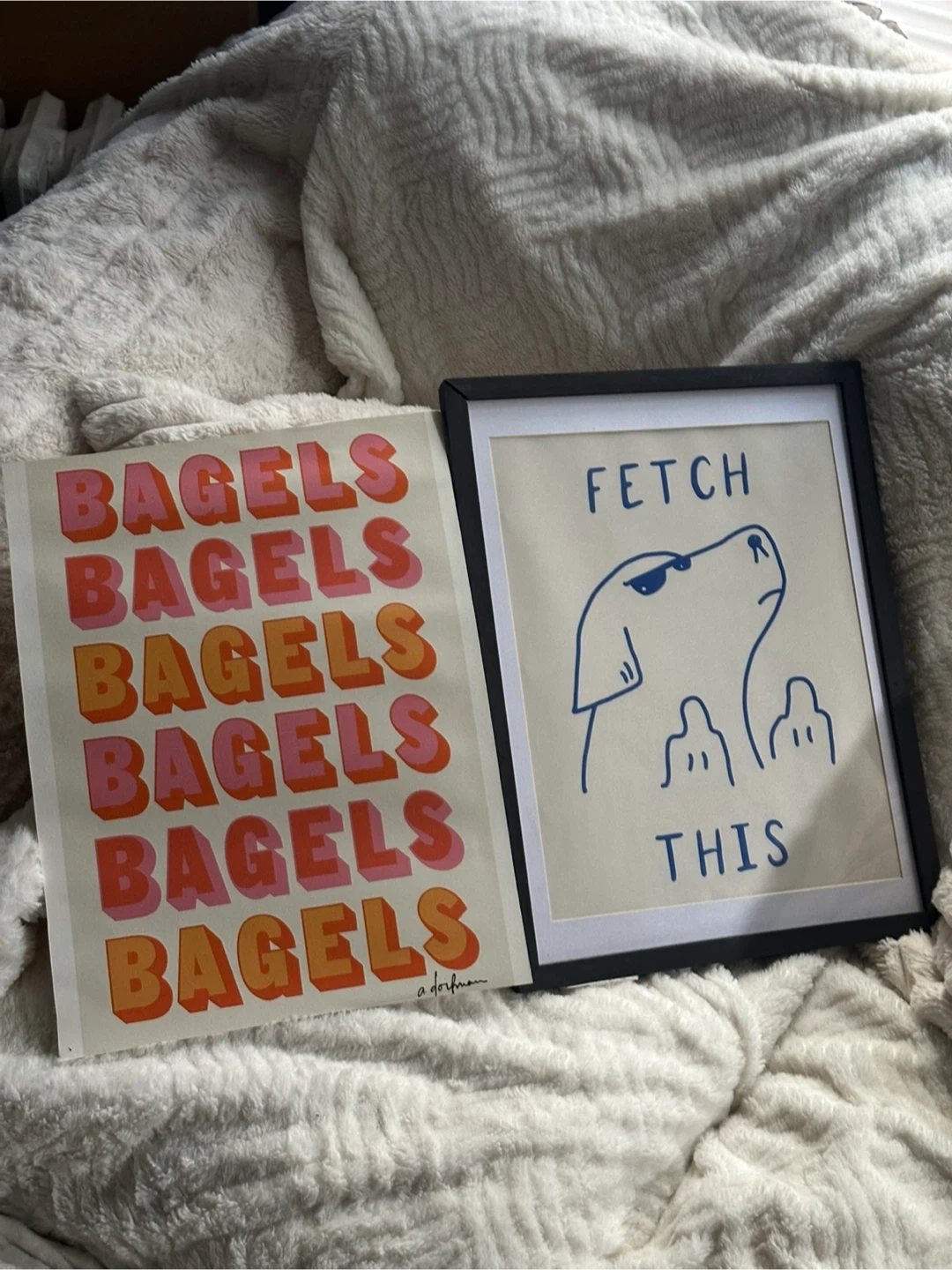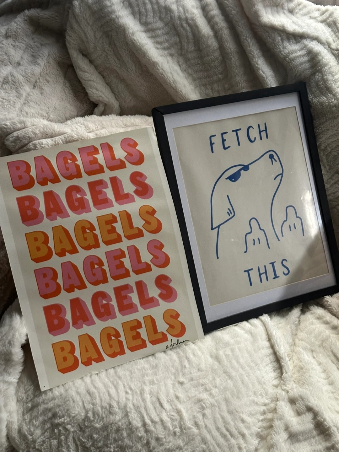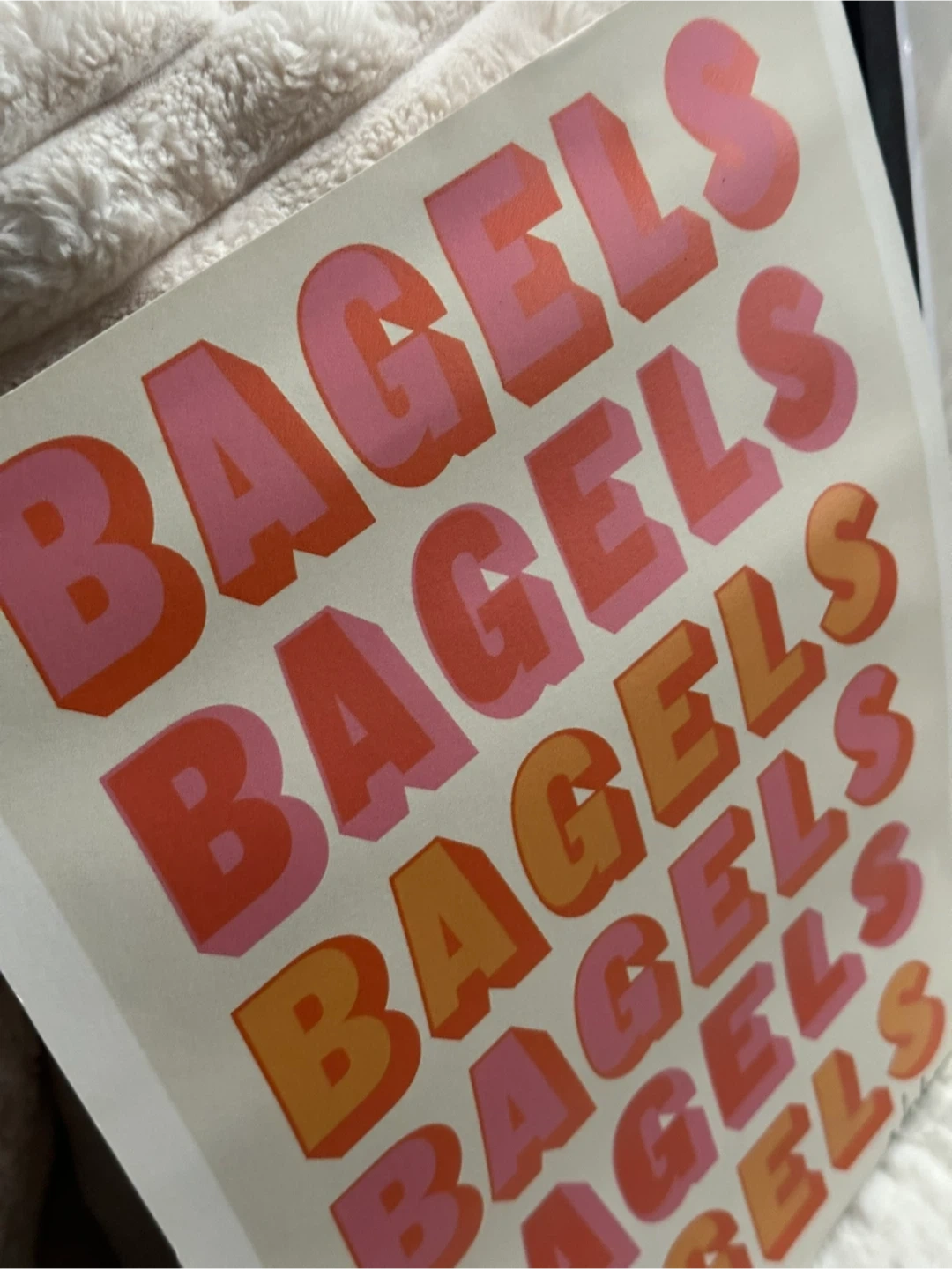 I have a cute bagel print poster for sale! It would look great in a kitchen or breakfast vibez or anywhere! Frames not included