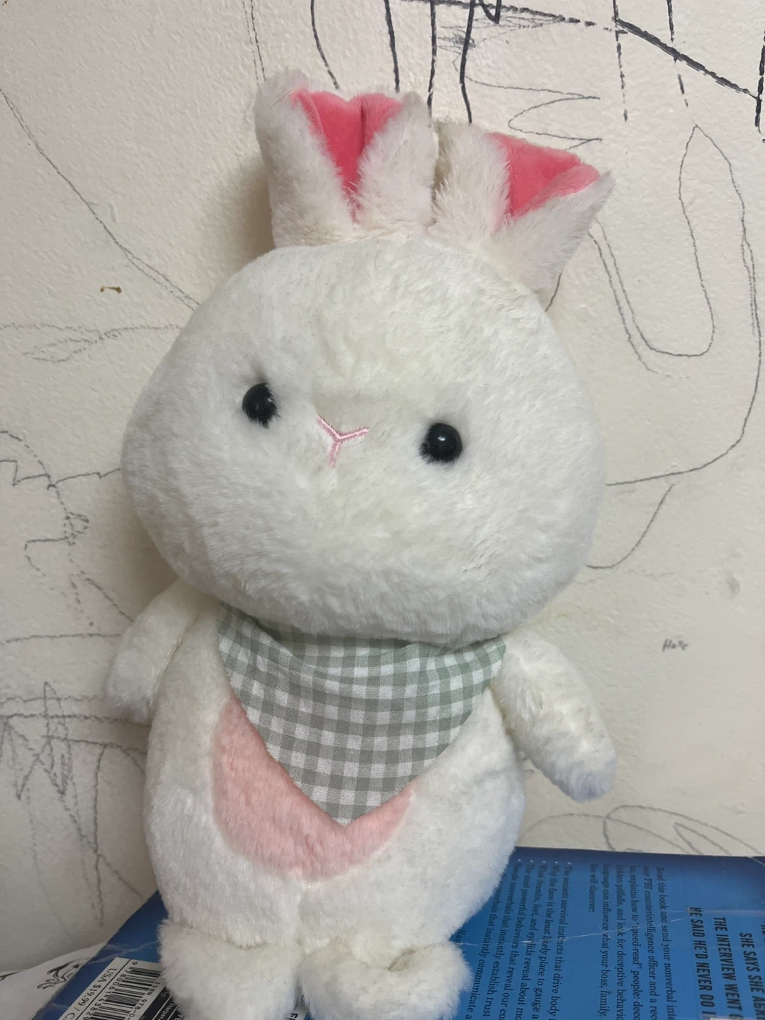 10Selling a super adorable white bunny plush! It has cute pink accents on the ears and body, and a checkered bandana. It's in great condition and ready for a new home! Great for kid's birthday present or as a gift.