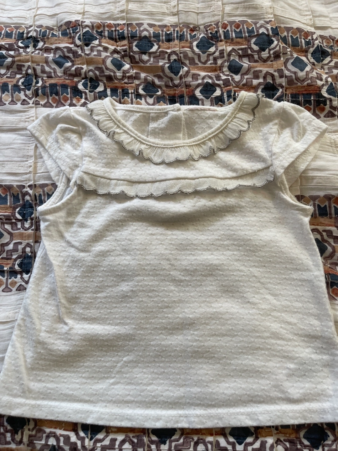 20A sweet little white baby top with a ruffle trim! It's in great condition and ready for a new home. Perfect for dressing up your little one! 6262 N Harlem Ave. 60631