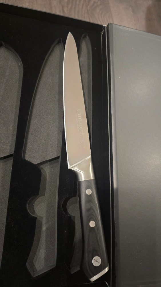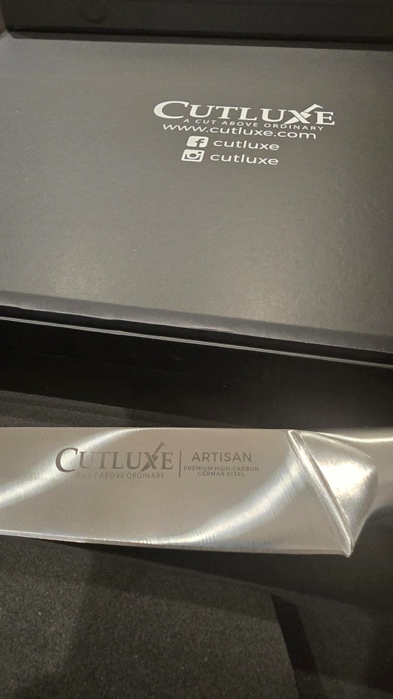 Selling a Cutluxe Artisan knife made with premium high carbon German steel. I bought set of 5. However, I don't use this one. Just open package and never been used.