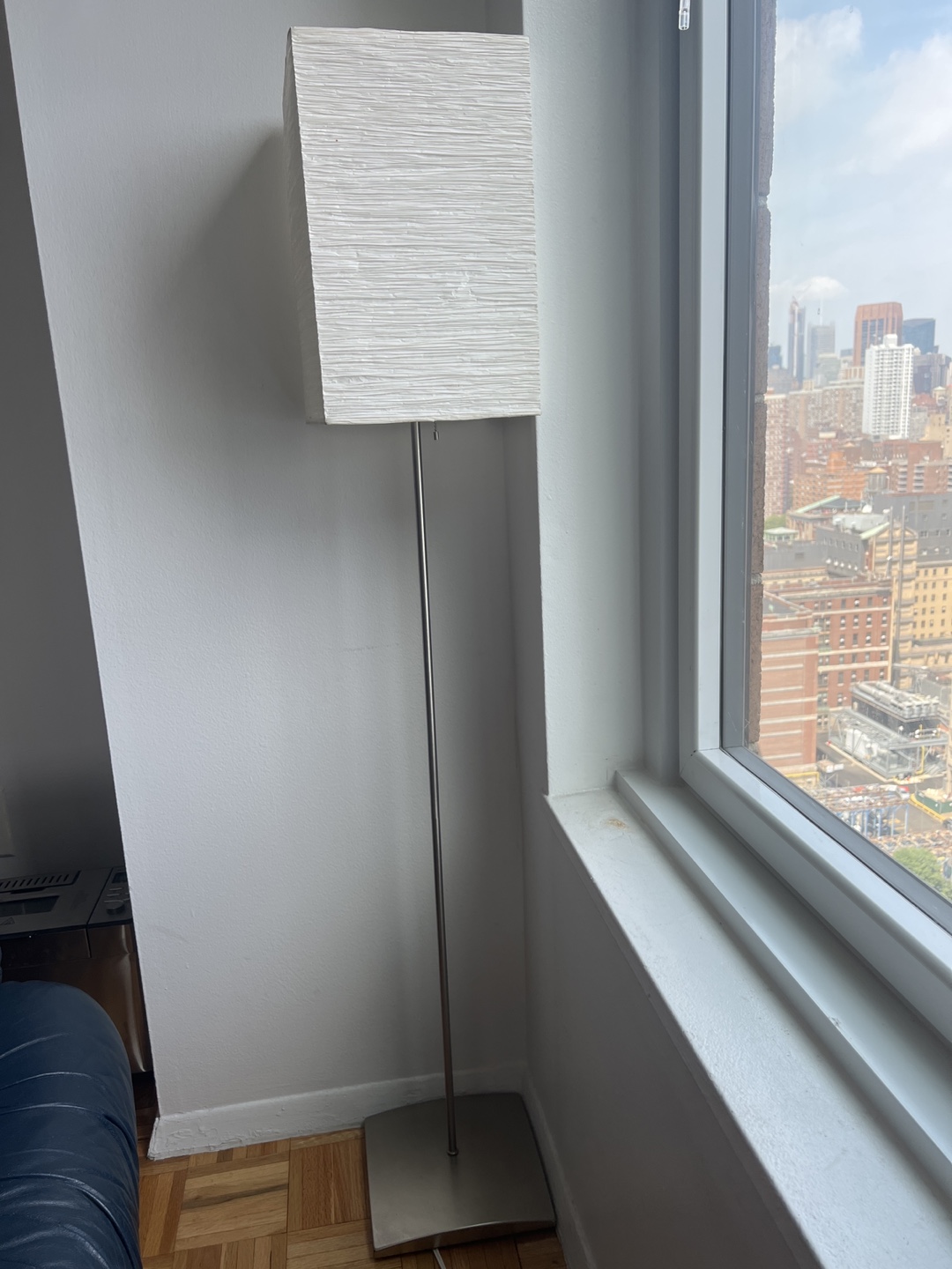 Selling a IKEA modern floor lamp with a square shade. It has a sleek design with a silver pole and base. The shade is a textured off-white color. It's in great condition and would look great in any room! 5 feet tall and in great condition. Pick up from 10010
