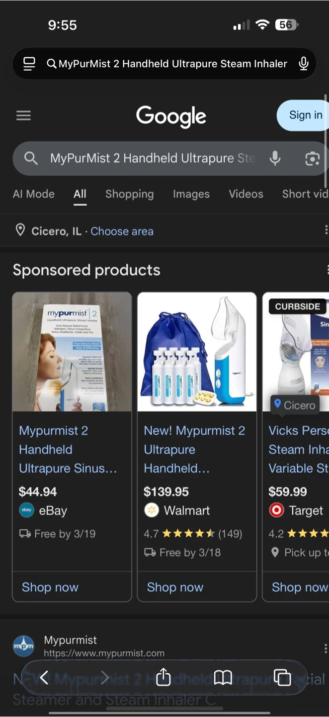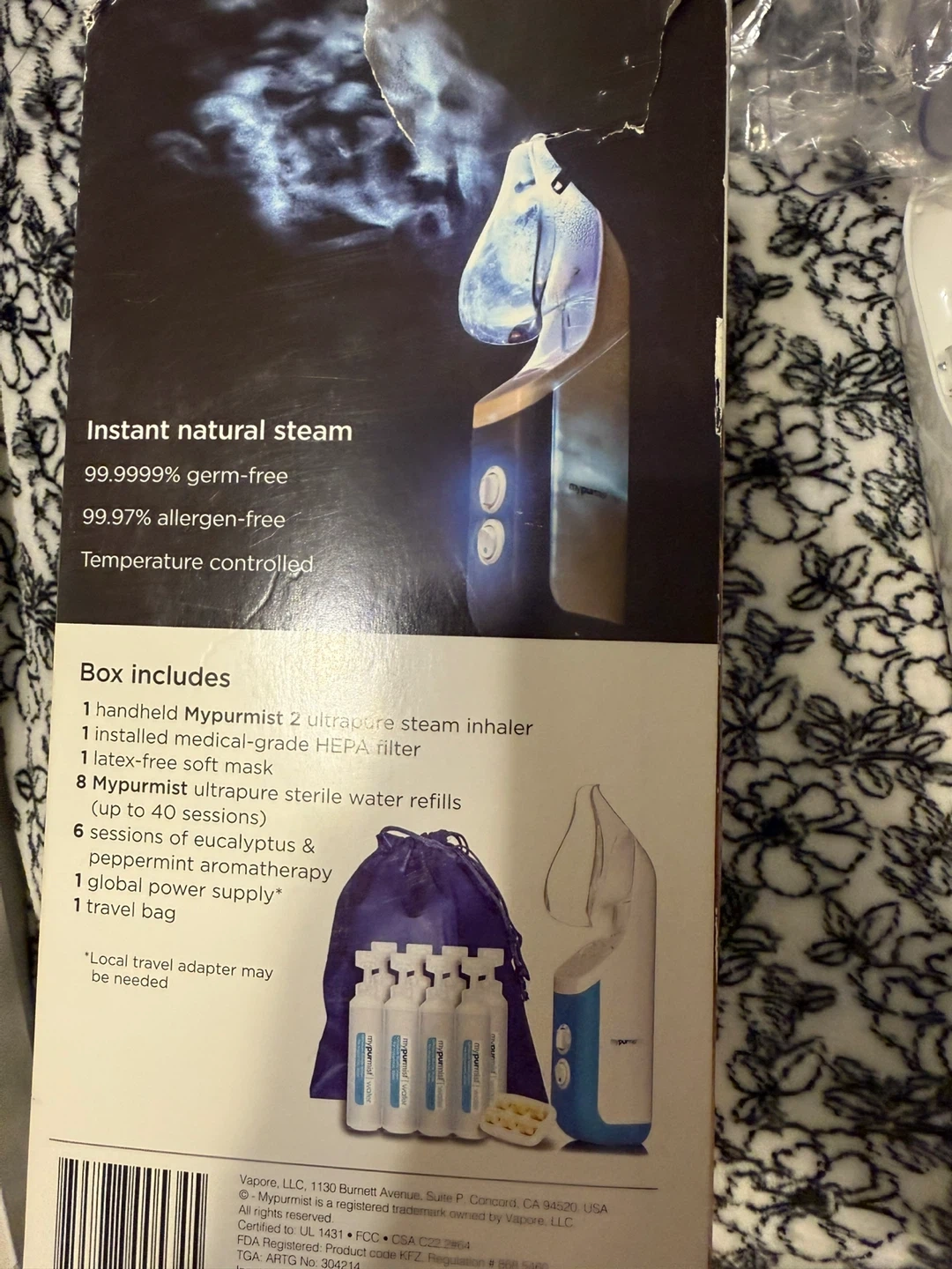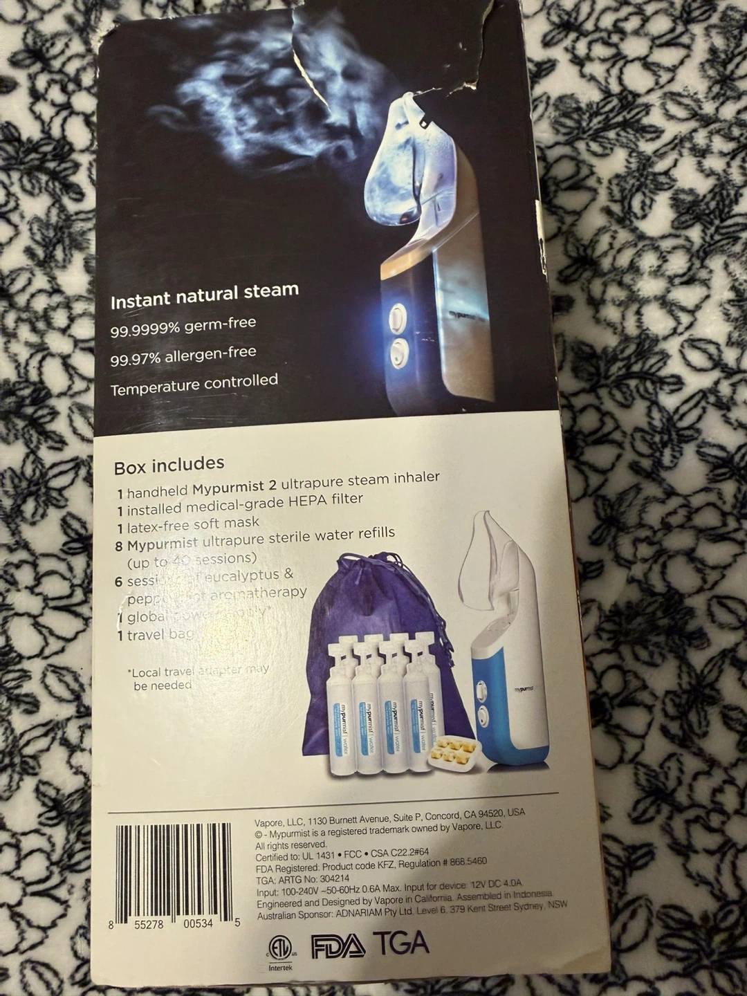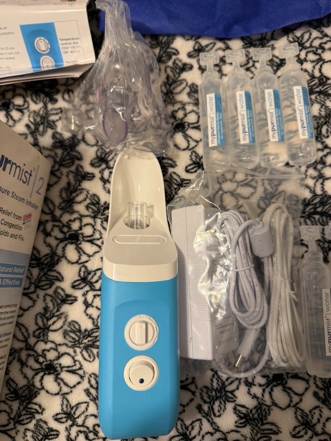 This MyPurMist 2 handheld steam inhaler provides instant, natural steam for relief. It's doctor-recommended and includes 8 MyPurMist ultrapure sterile water refills. It's easy to use and portable, perfect for home or travel!