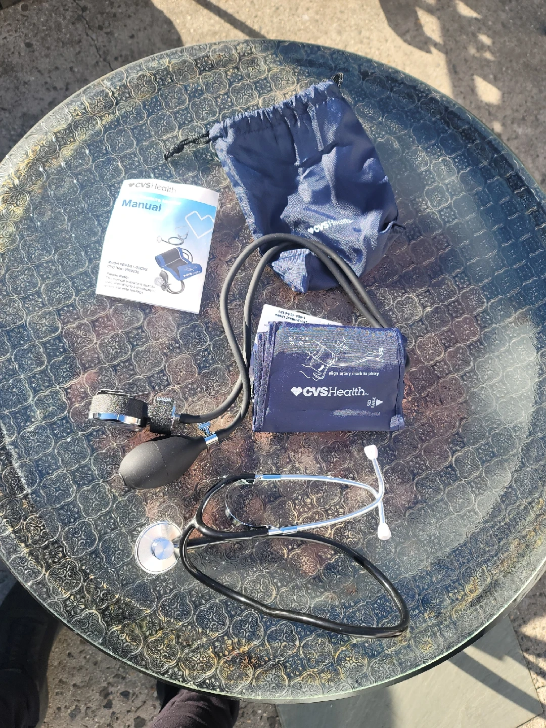 16Selling a CVS Health blood pressure monitor and stethoscope set! It includes the manual, blood pressure cuff, pump, stethoscope, and carrying bag