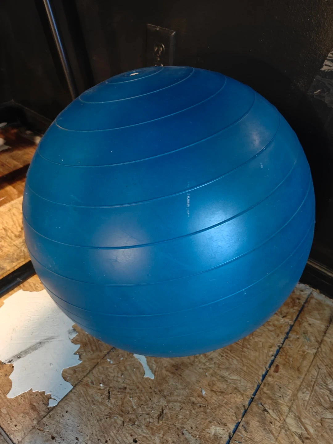 This is a blue exercise stability ball. It's made of durable material and has a ribbed surface for better grip. It's perfect for core workouts and improving balance.