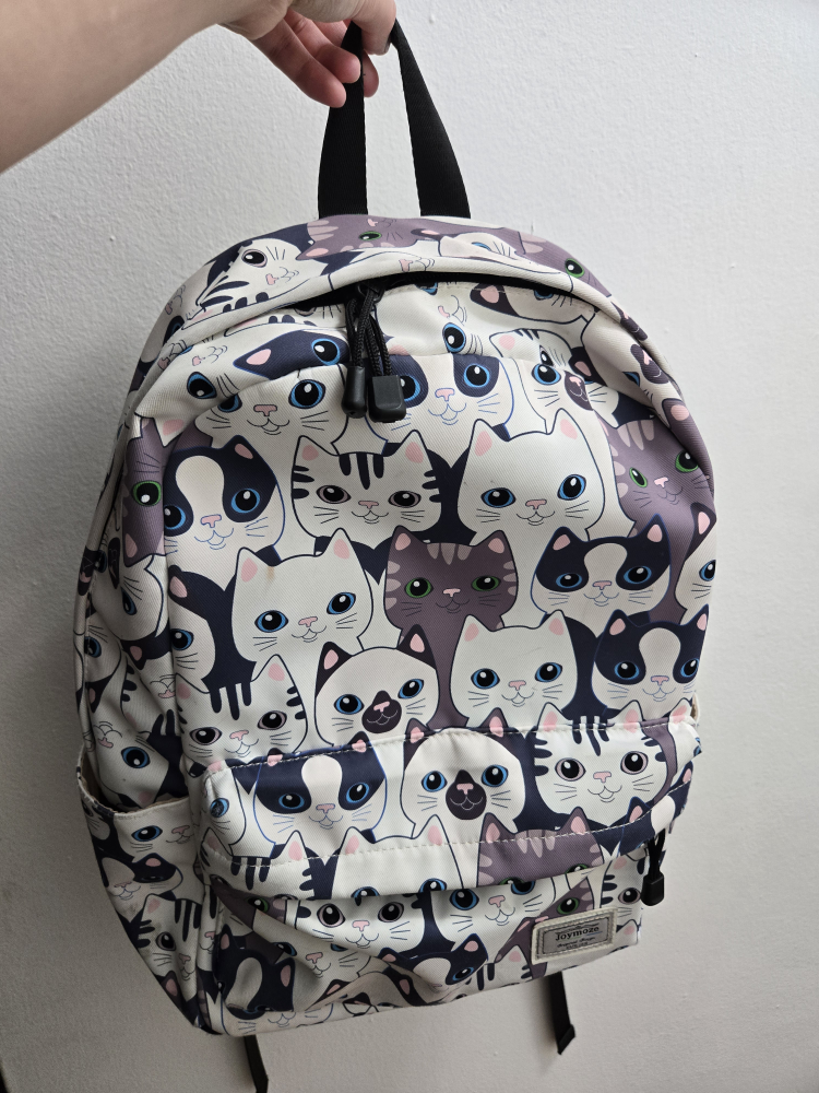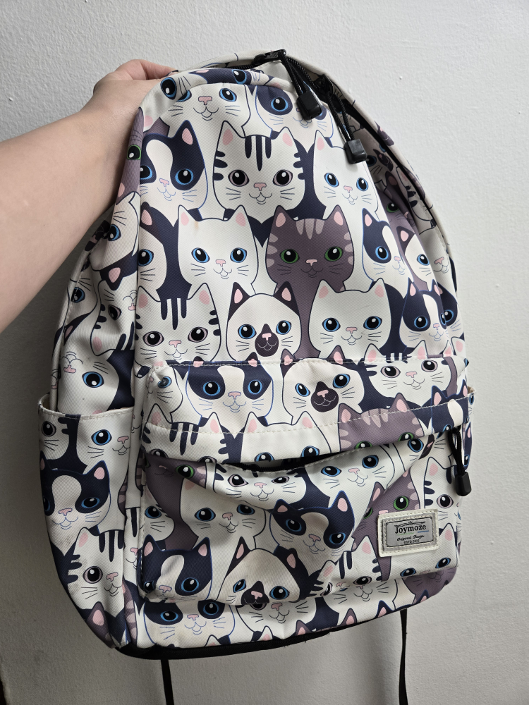 Giving away a cute Joymoze kids backpack with an all-over cat print! It's in great condition and perfect for school or travel. The backpack features adjustable straps and multiple pockets for easy organization