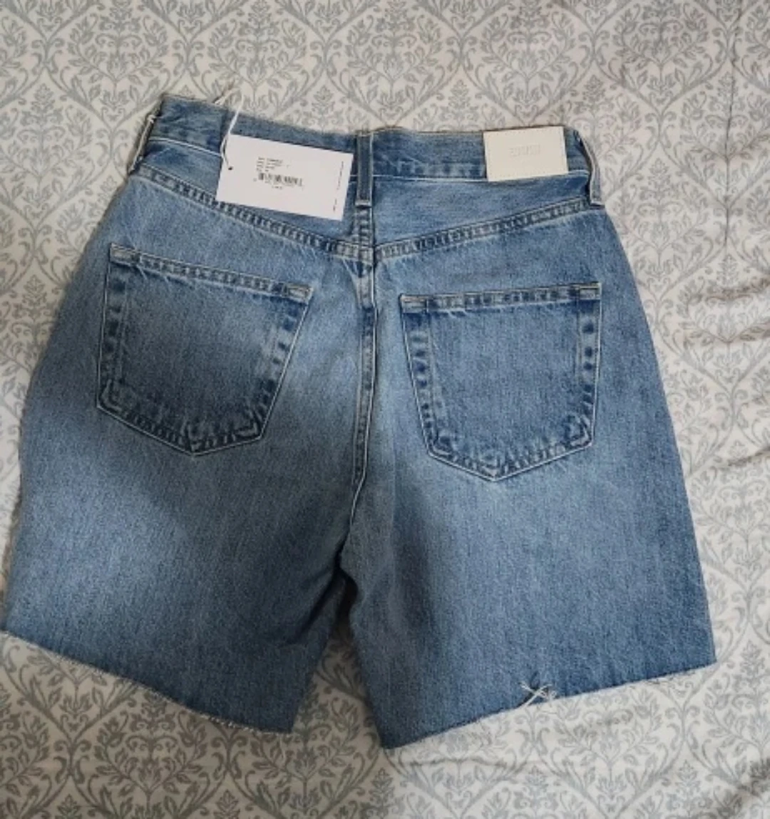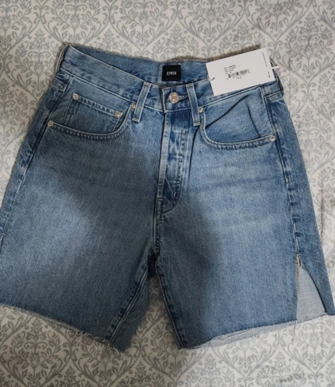 These Edwin Cai denim shorts are in great condition and ready for a new home! They're a stylish light blue wash, size 25, and have a cool, modern look. The original price was $128