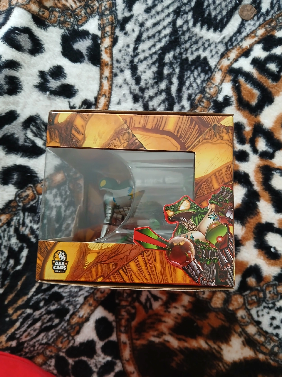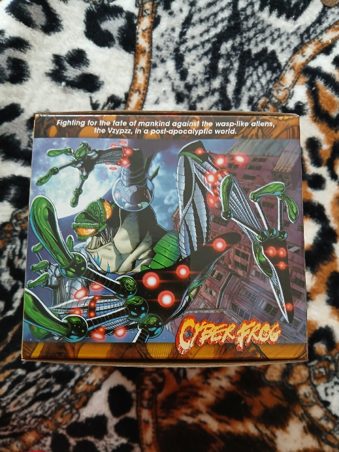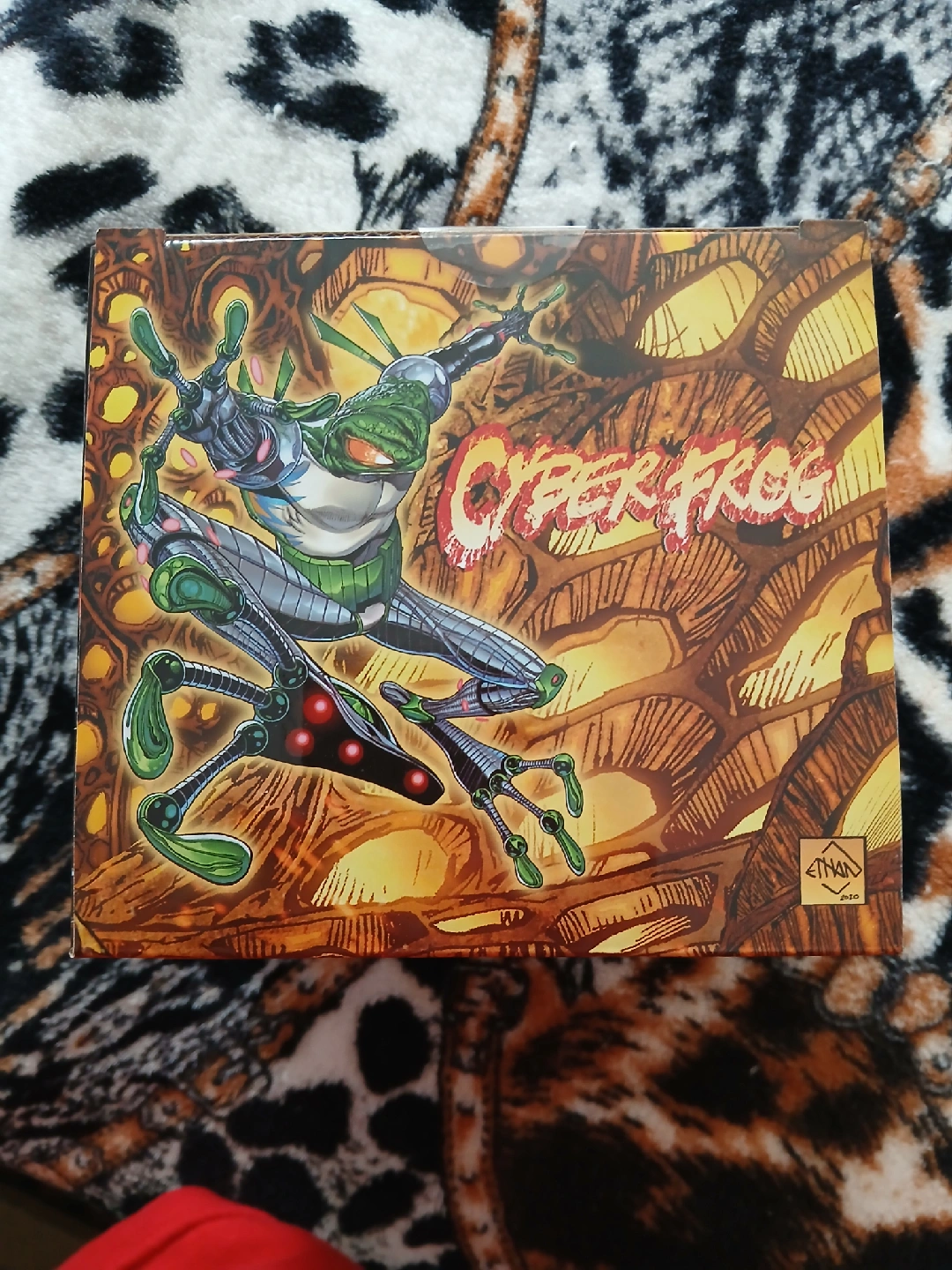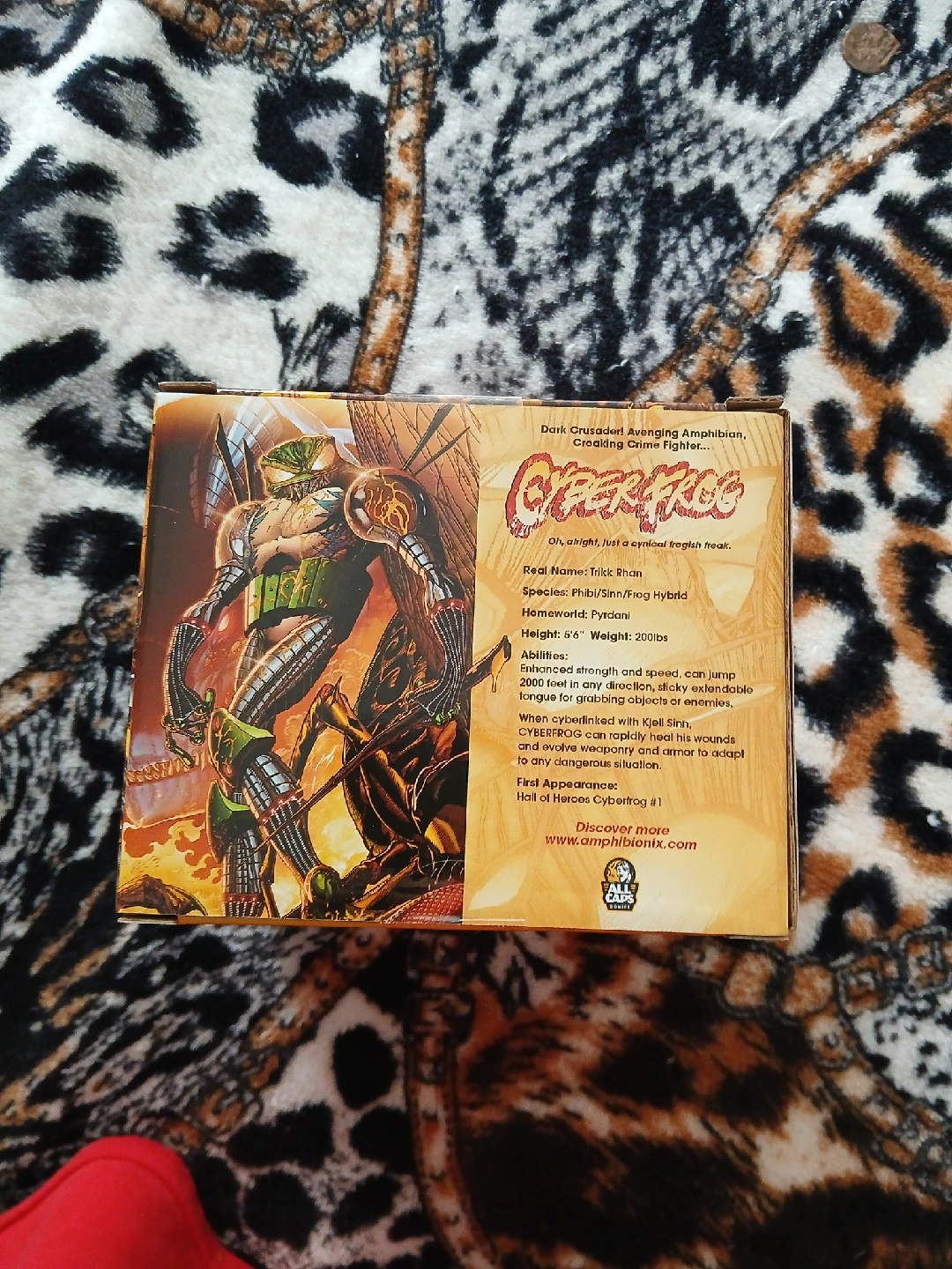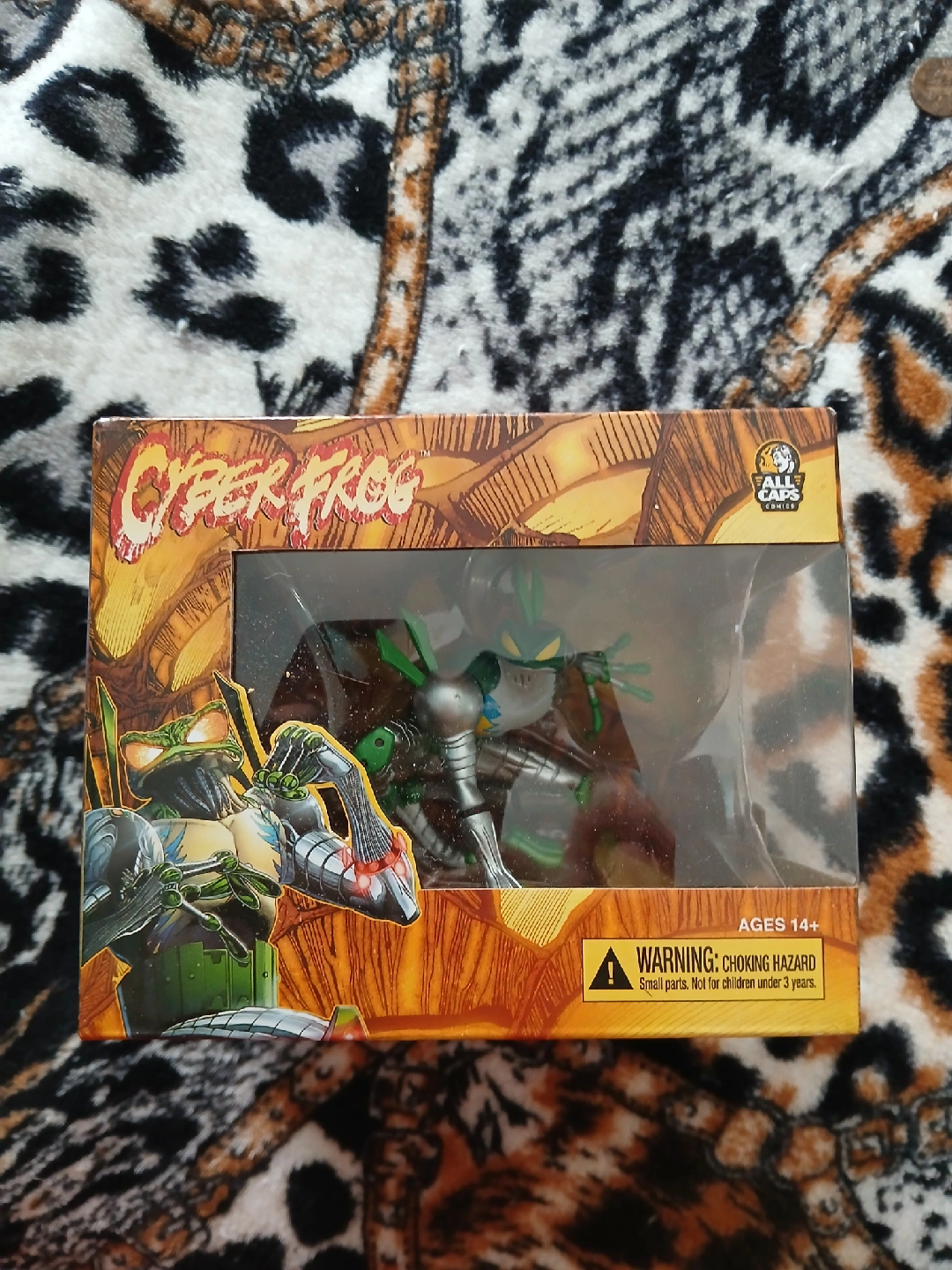 Selling a Cyber Frog figurine from the All Caps series! The box shows the character's name as Trick Rhon, a Phibi/Sim/Frog hybrid from the homeworld Pyclon. The packaging indicates it's for ages 14+