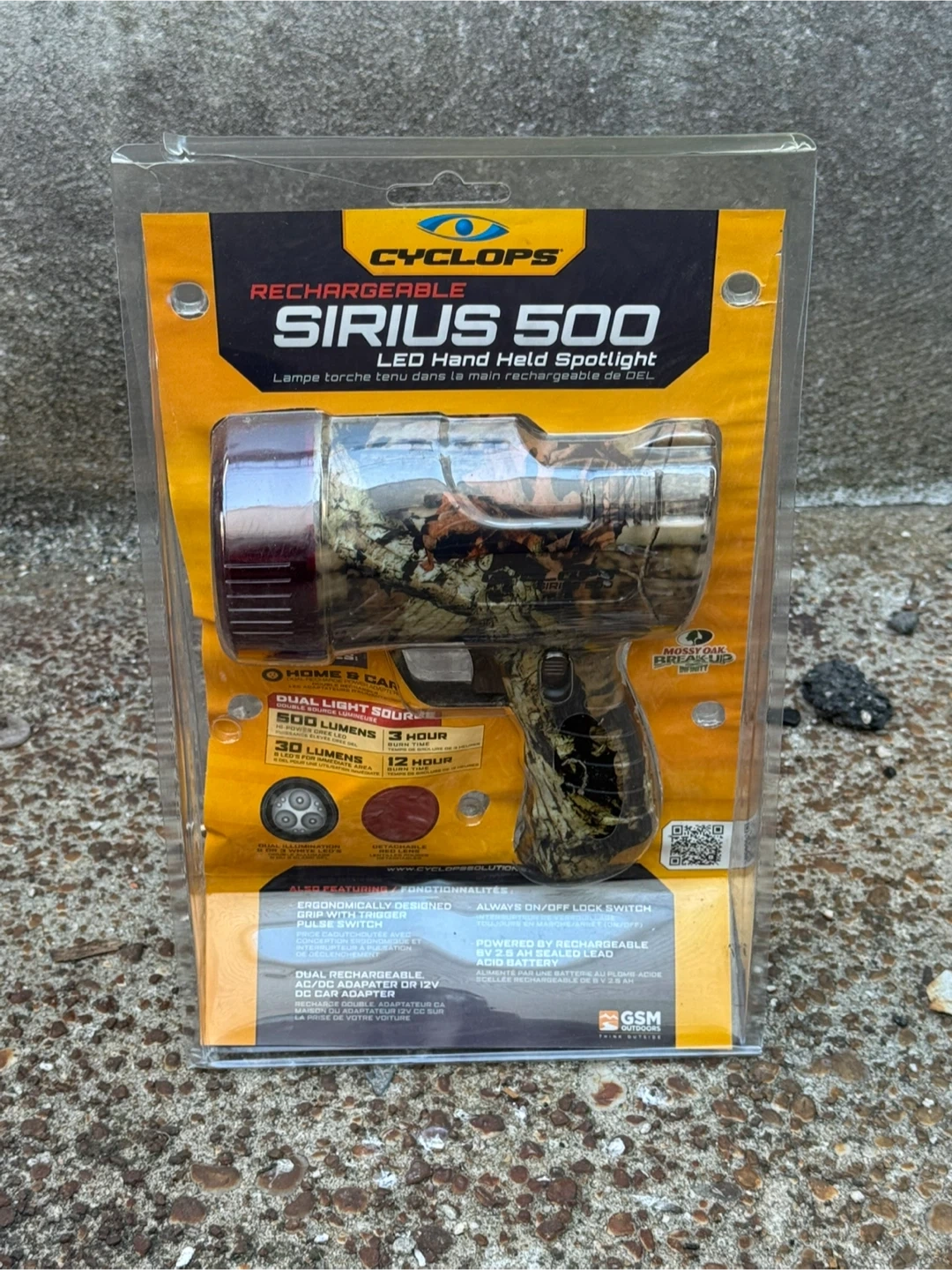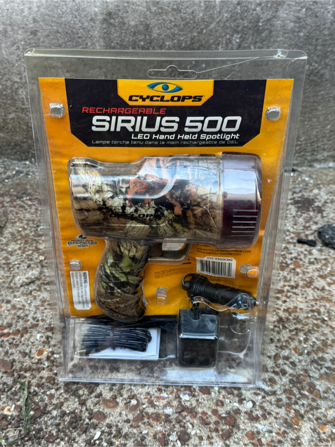 Selling a Brand New Cyclops Sirius 500 LED hand held spotlight. It is rechargeable and comes with a detachable red lens. It features a dual light source and is impact resistant and water resistant. Includes a rechargeable lead acid battery and a DC car adapter
