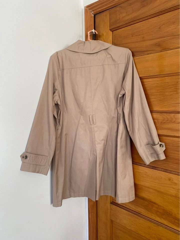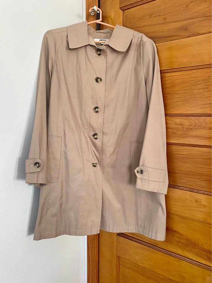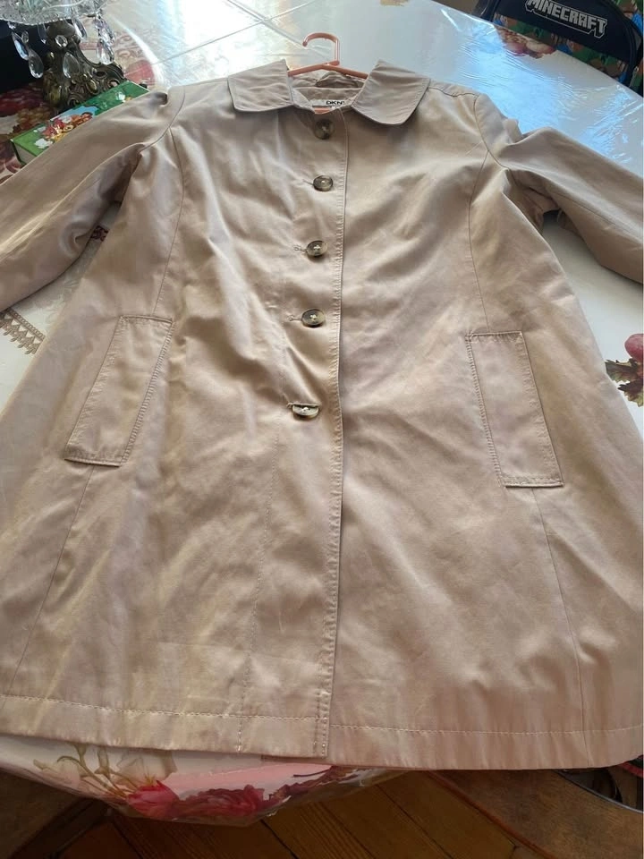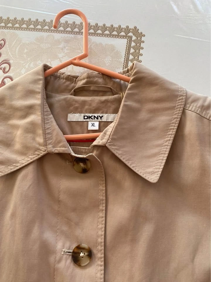 DKNY Trench Coat Womens Size XL Beige Single Breasted Button Up