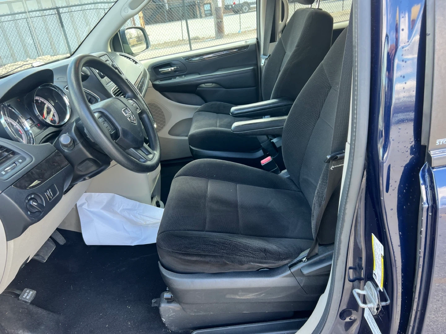 This is a dark blue Dodge Grand Caravan minivan. It's a four-door vehicle with comfortable cloth seating inside. The exterior is clean and it's ready for a new owner!