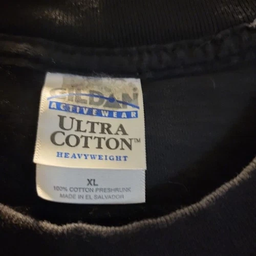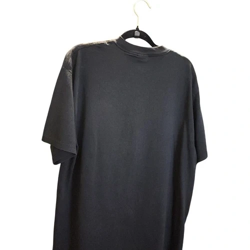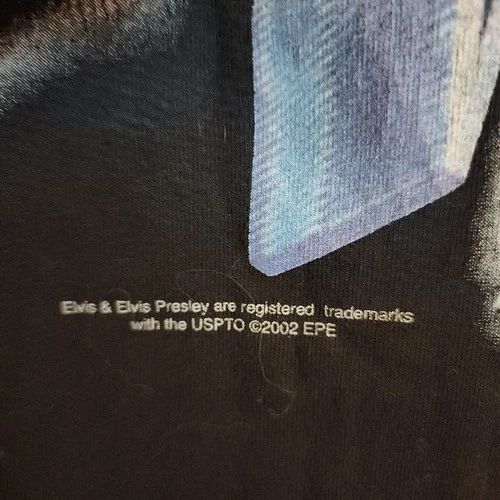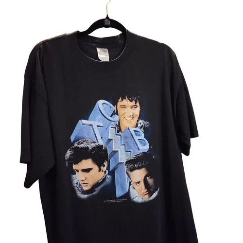 Authentic vintage Elvis “TCB” graphic T-shirt printed on a 2002 Gildan Heavyweight blank. Features classic Elvis TCB imagery associated with Elvis Presley, with natural aging that gives it true vintage character. This shirt has a noticeable fade from wear and washing, adding to the worn-in vintage look. There are some flaws present, consistent with age and use. Please review all photos carefully for condition details. Artist: Elvis (TCB design) Year: 2002 Tag: Gildan Heavyweight Size: See measurements Measurements: 23” pit to pit x 31” length Color: Faded (see photos) Condition: Vintage, faded, with flaws. This is a genuine vintage piece, not a reproduction. Fading and flaws are part of the shirt’s character and appeal. Sold as-is. Measurements provided for best fit. Colors may vary slightly due to lighting and screen settings.