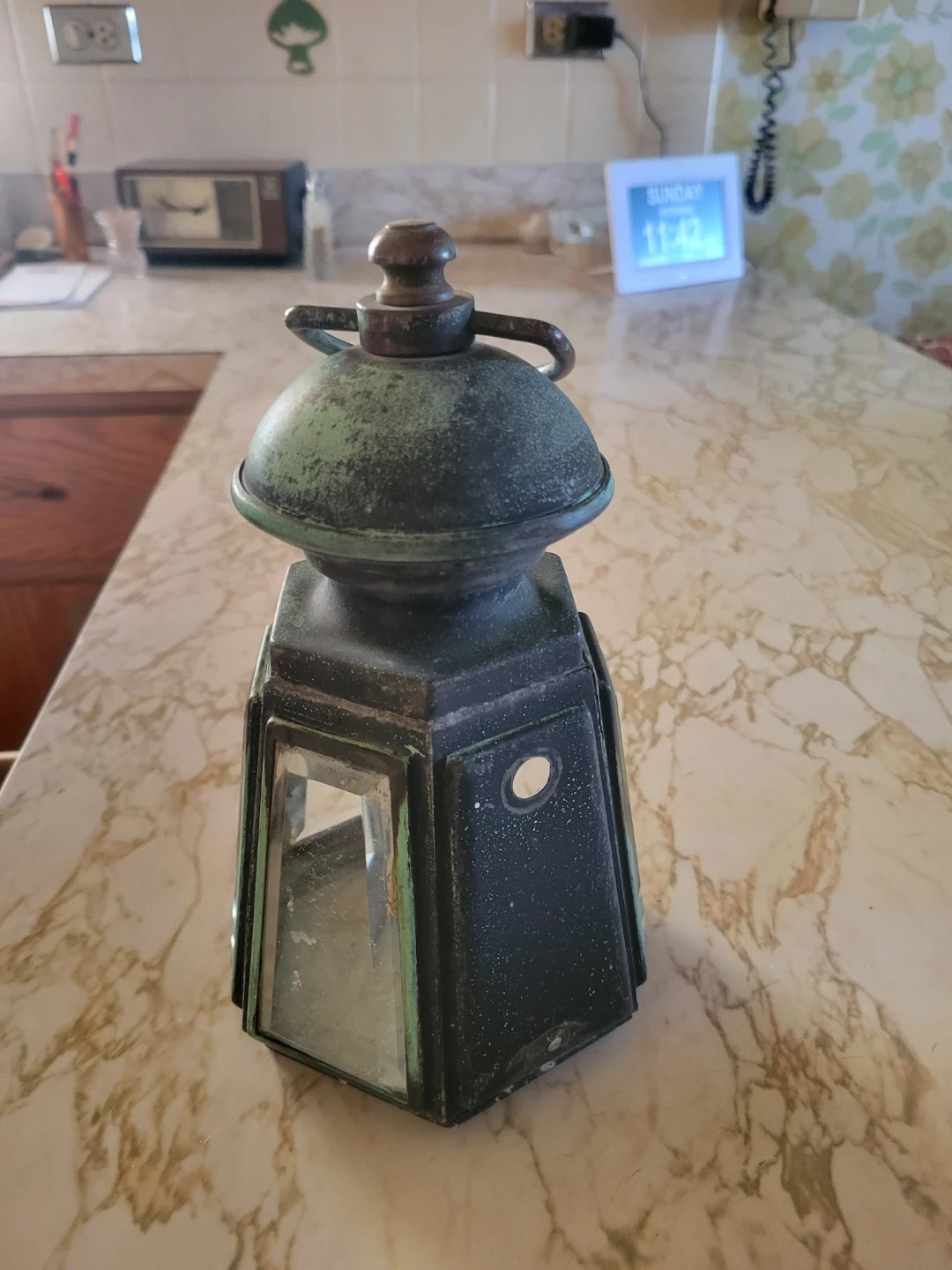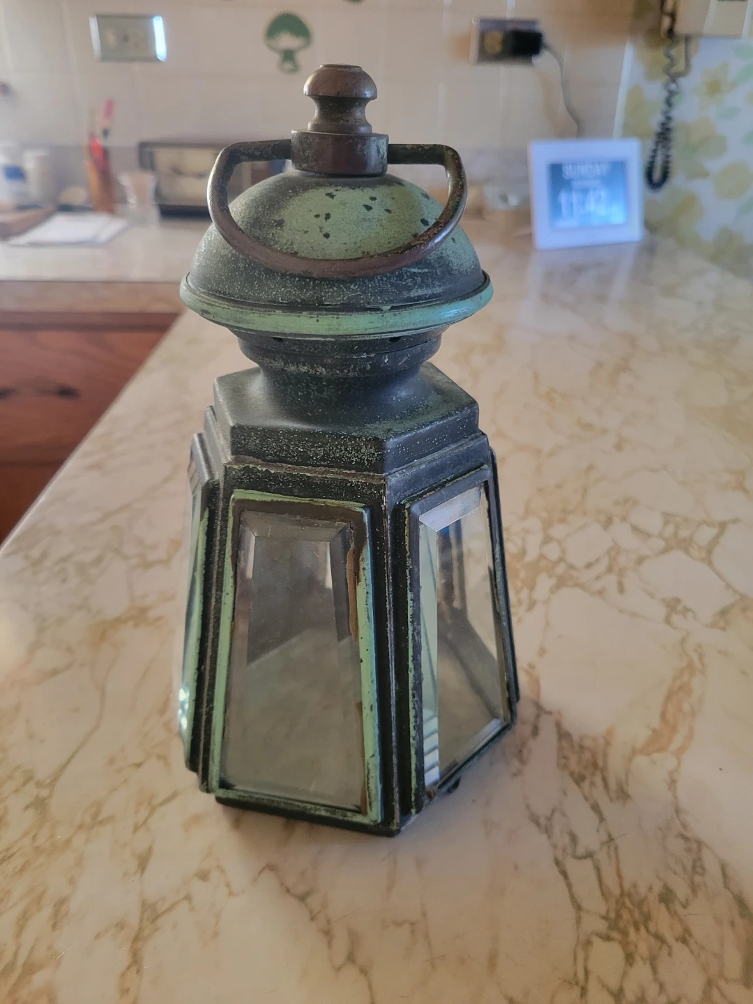 Selling a vintage-style lantern that would look great in any home! It has a unique design with a weathered look, adding to its charm
