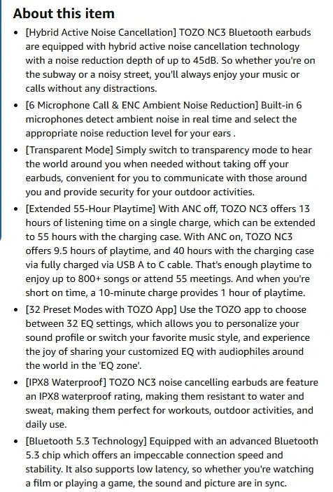 [Transparent Mode] Simply switch to transparency mode to hear the world around you when needed without taking off your earbuds, convenient for you to communicate with those around you and provide security for your outdoor activities.