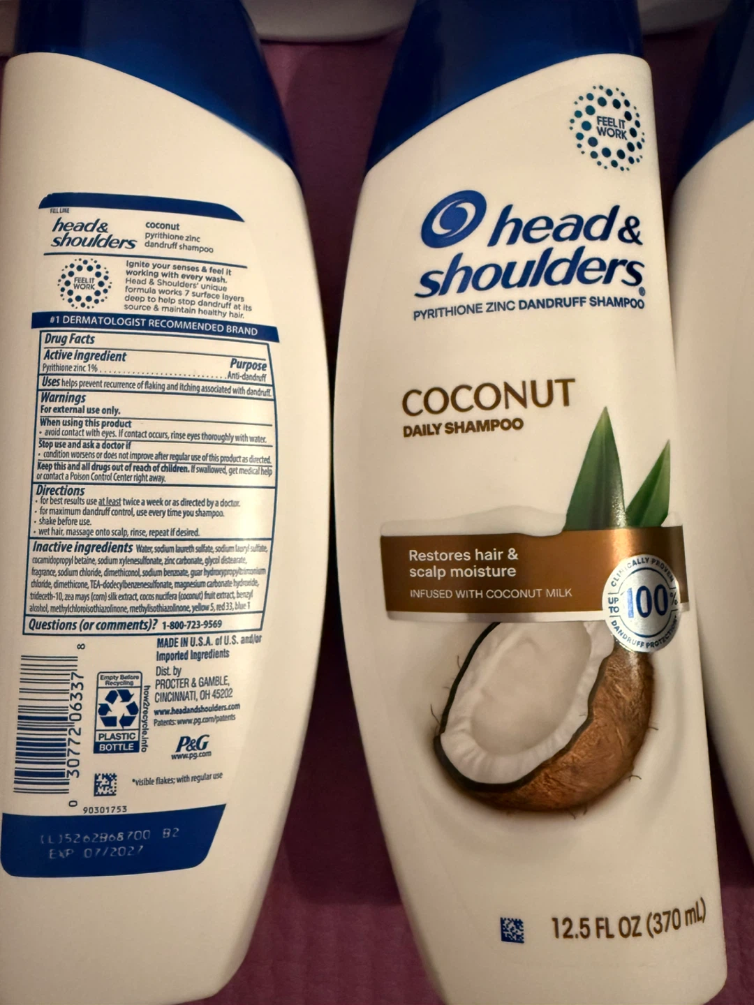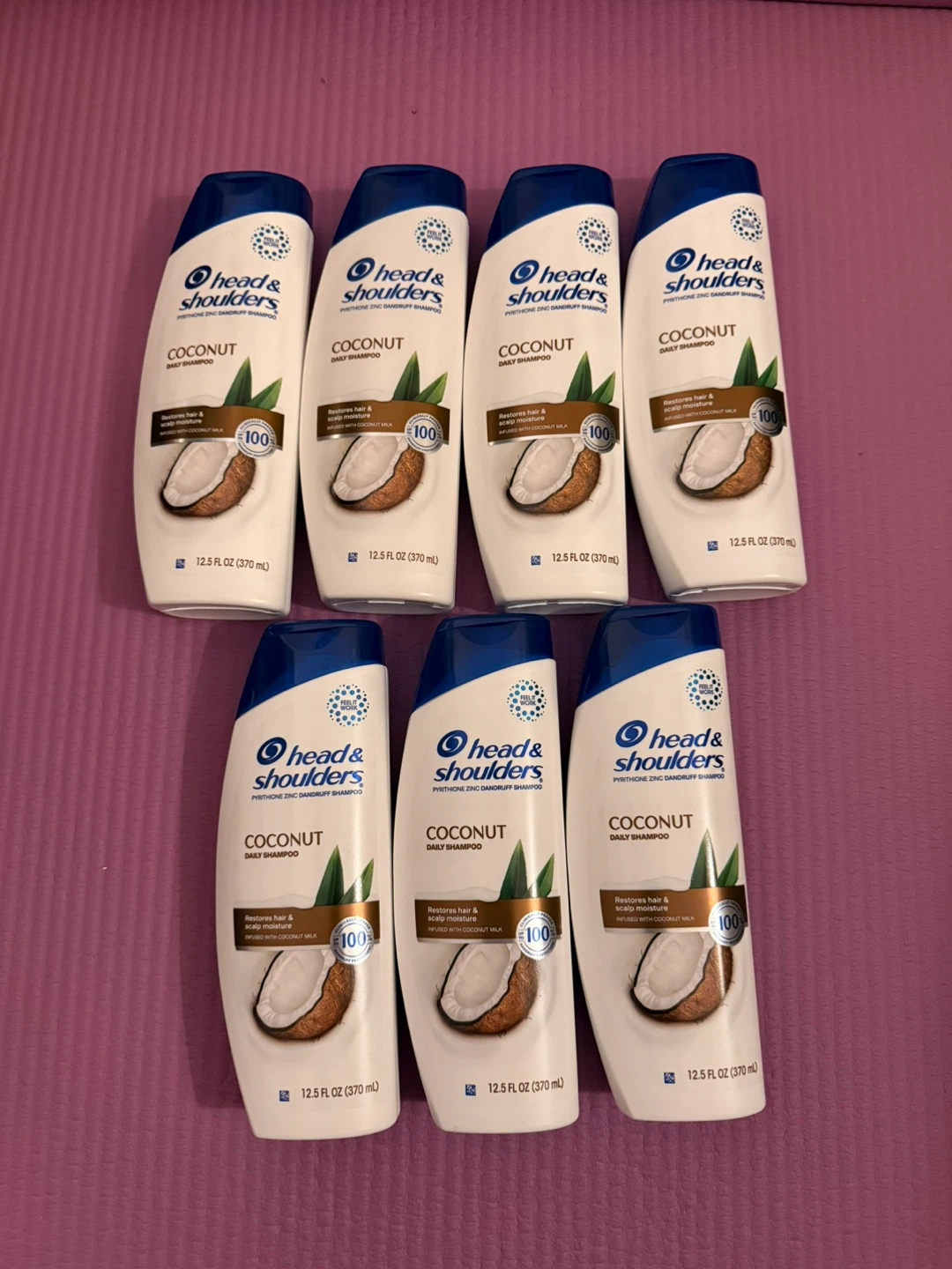 [✨Brand New✨]This lot includes seven bottles of Head & Shoulders Coconut Daily Shampoo. Each bottle is 12.5 FL OZ (370 mL). It's a pyrithione zinc dandruff shampoo designed to restore hair and scalp moisture. 💁♀️Each are $3 dollars