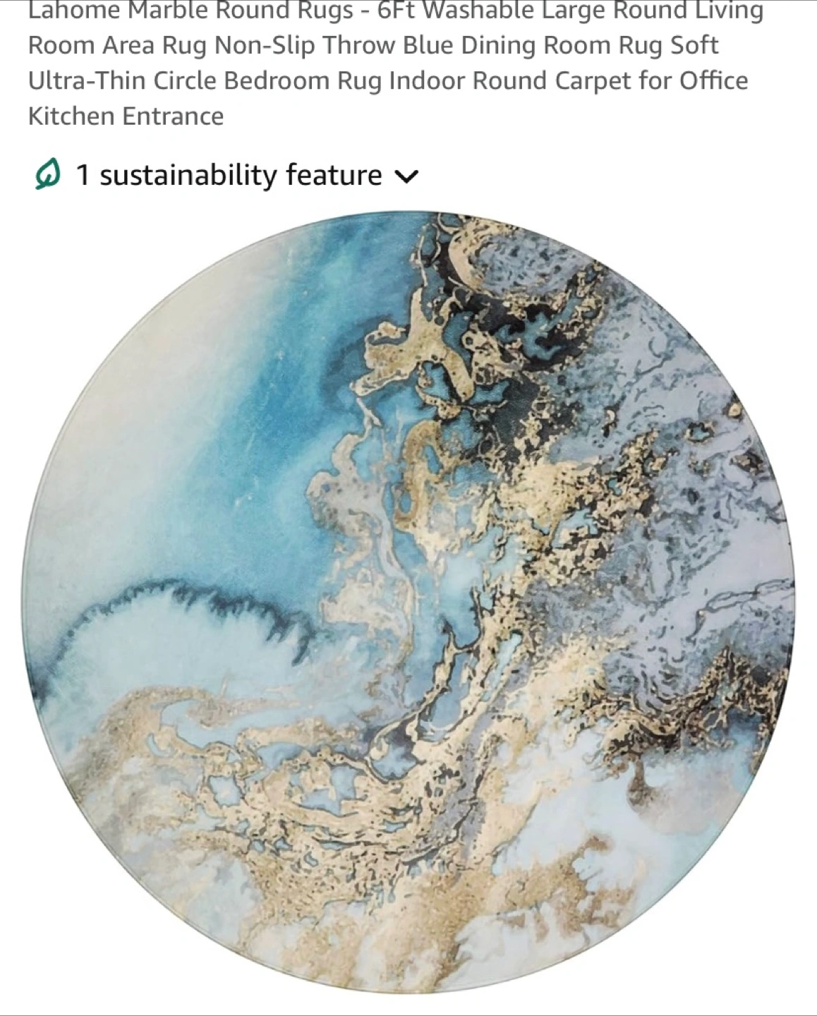 6FT Round Area Rug - Blue & Gold Marble Design