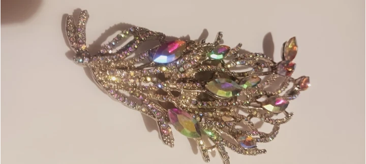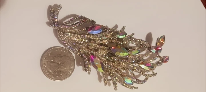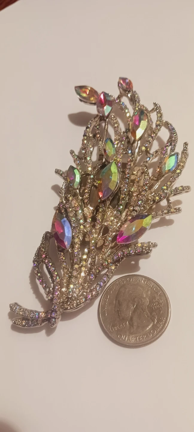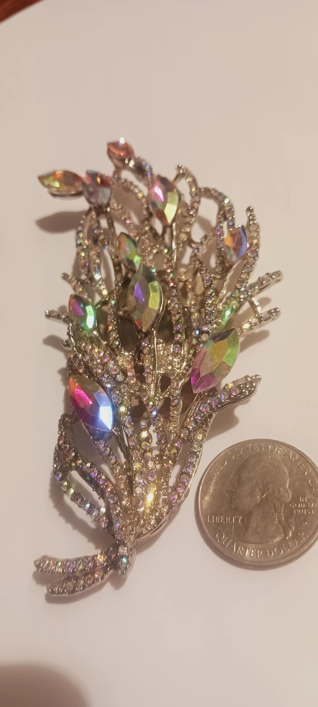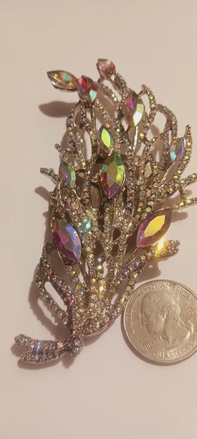 Gorgeous Large Vintage Sparkling floral bouquet brooch with clear and iridescent rhinestones. Silver-tone metal setting. 4.5"×2". Excellent condition. ALL MY PRICES ARE NEGOTIABLE !!