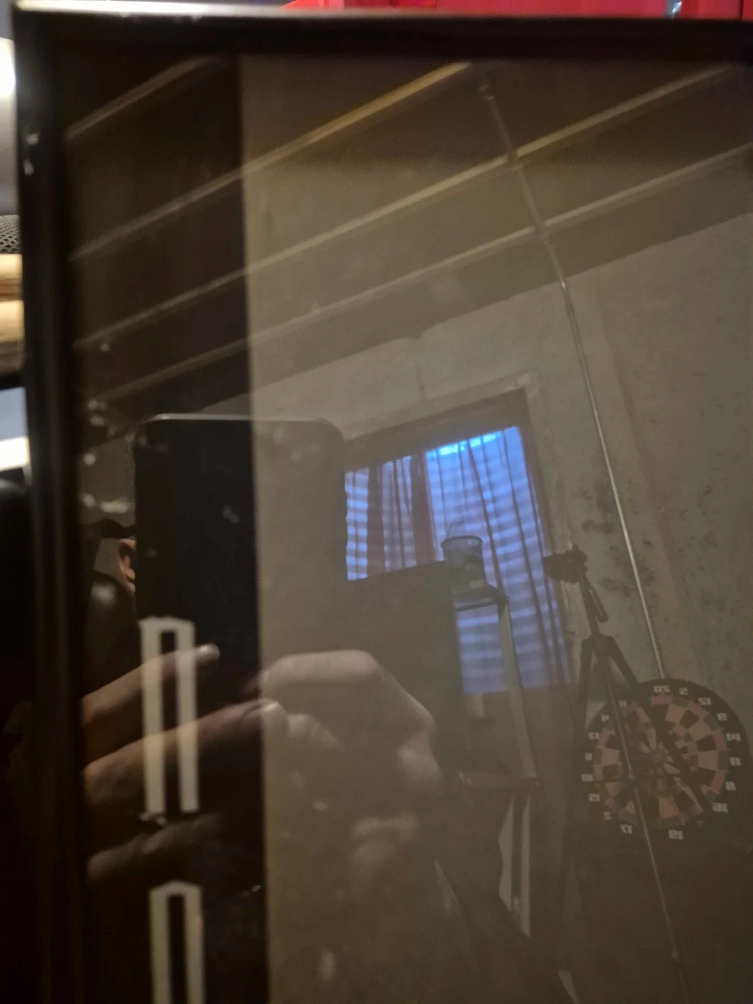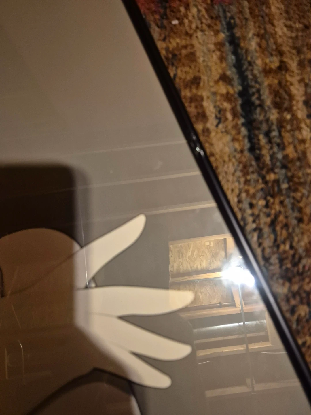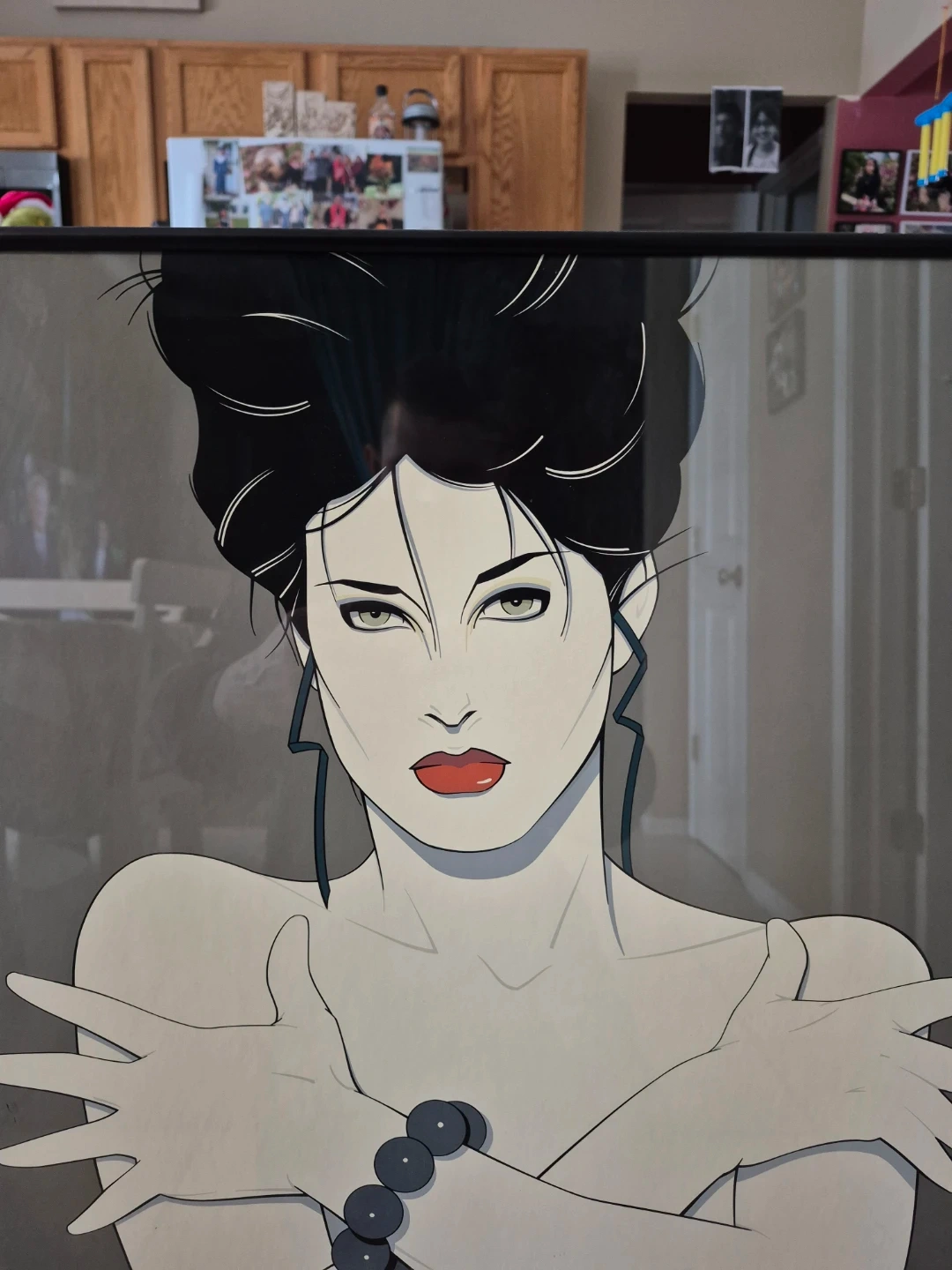 Selling a framed Nage Crossed Arml art print. It features the artist's signature style. The frame and print both have a few minor scratches. Look at pictures