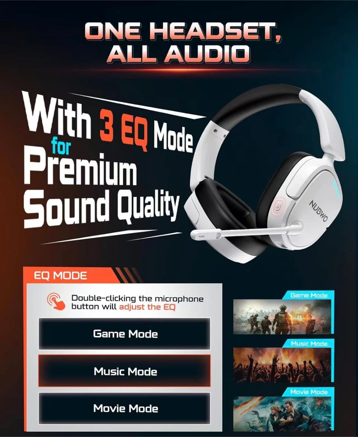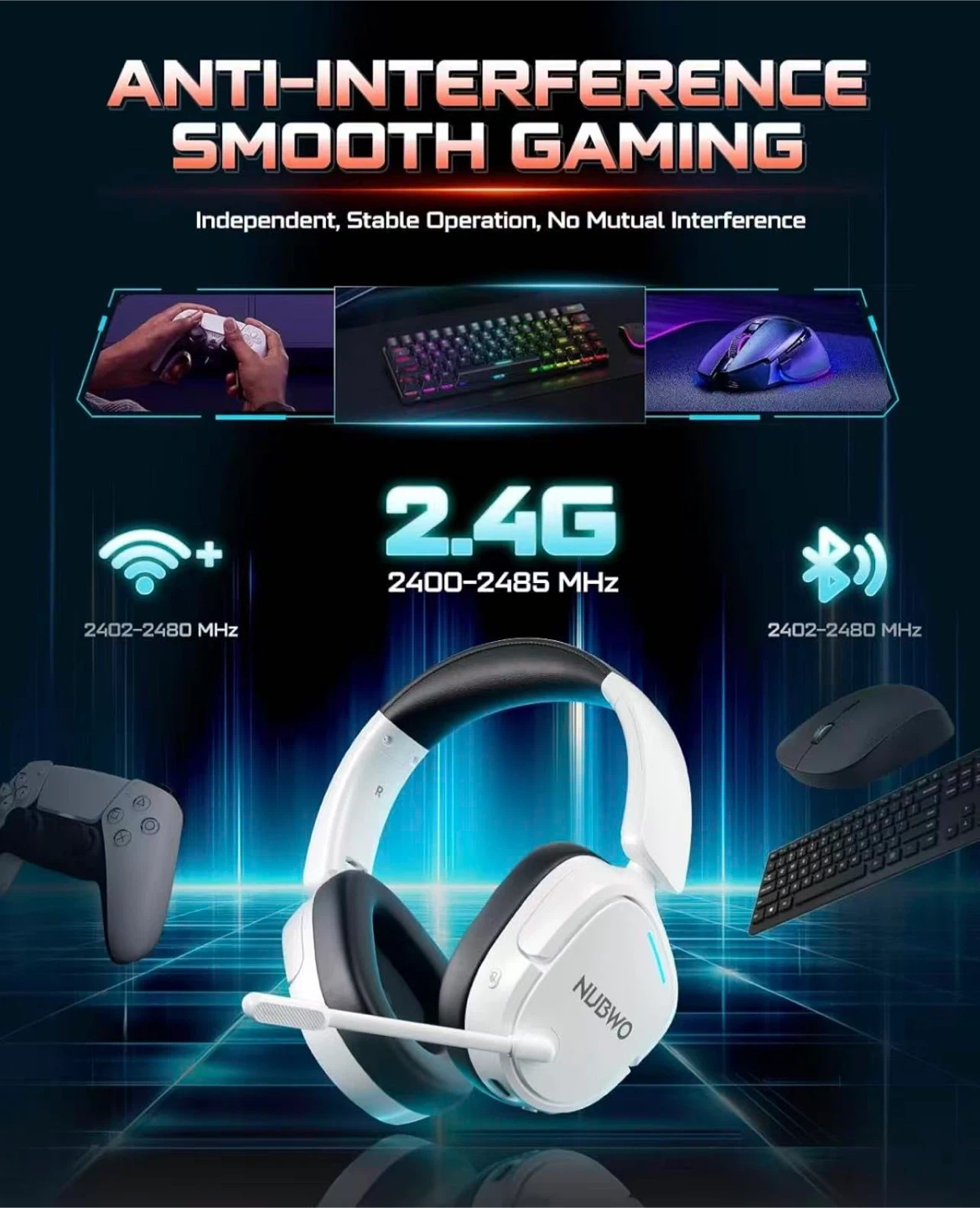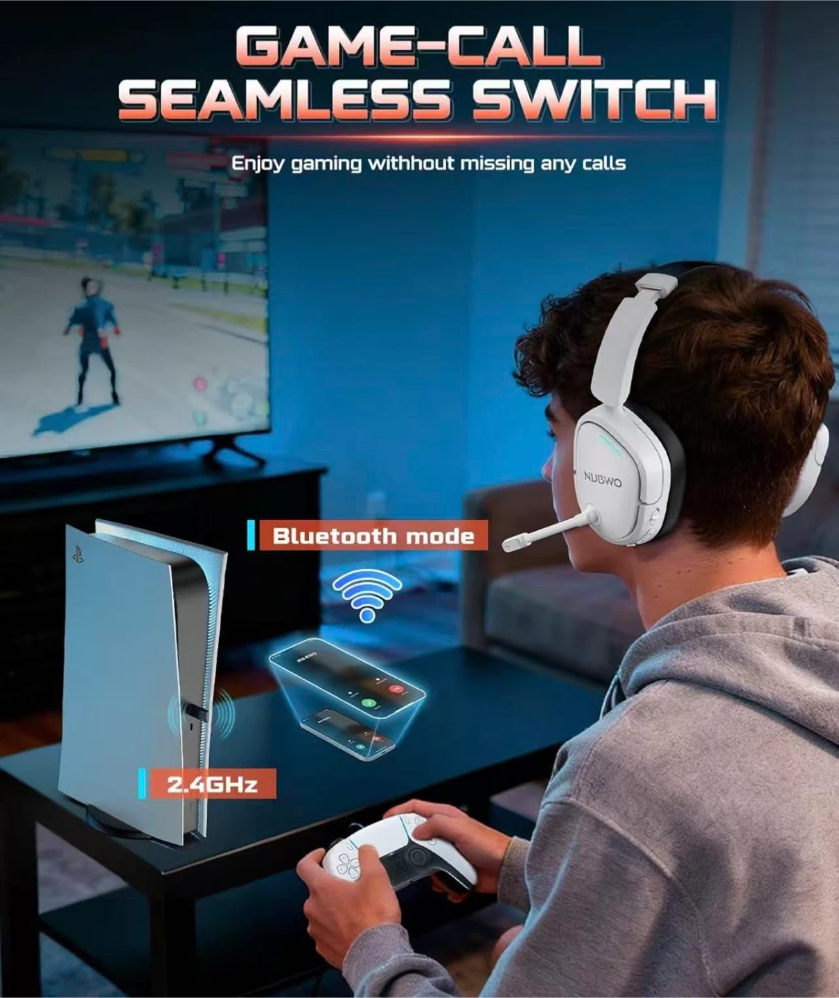 Wireless Gaming Headset for PC, PS5, PS4, Connect to Game & Phone Simultaneously (2.4GHz + Bluetooth), 3 EQ Modes, 50H Battery, PS5 Headset with Mic, Lightweight Foldable Headphones White/Black