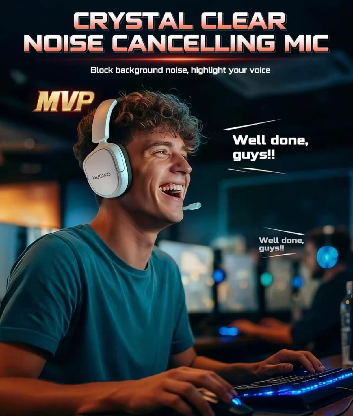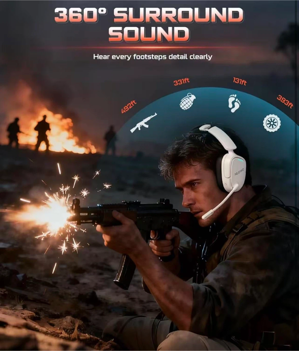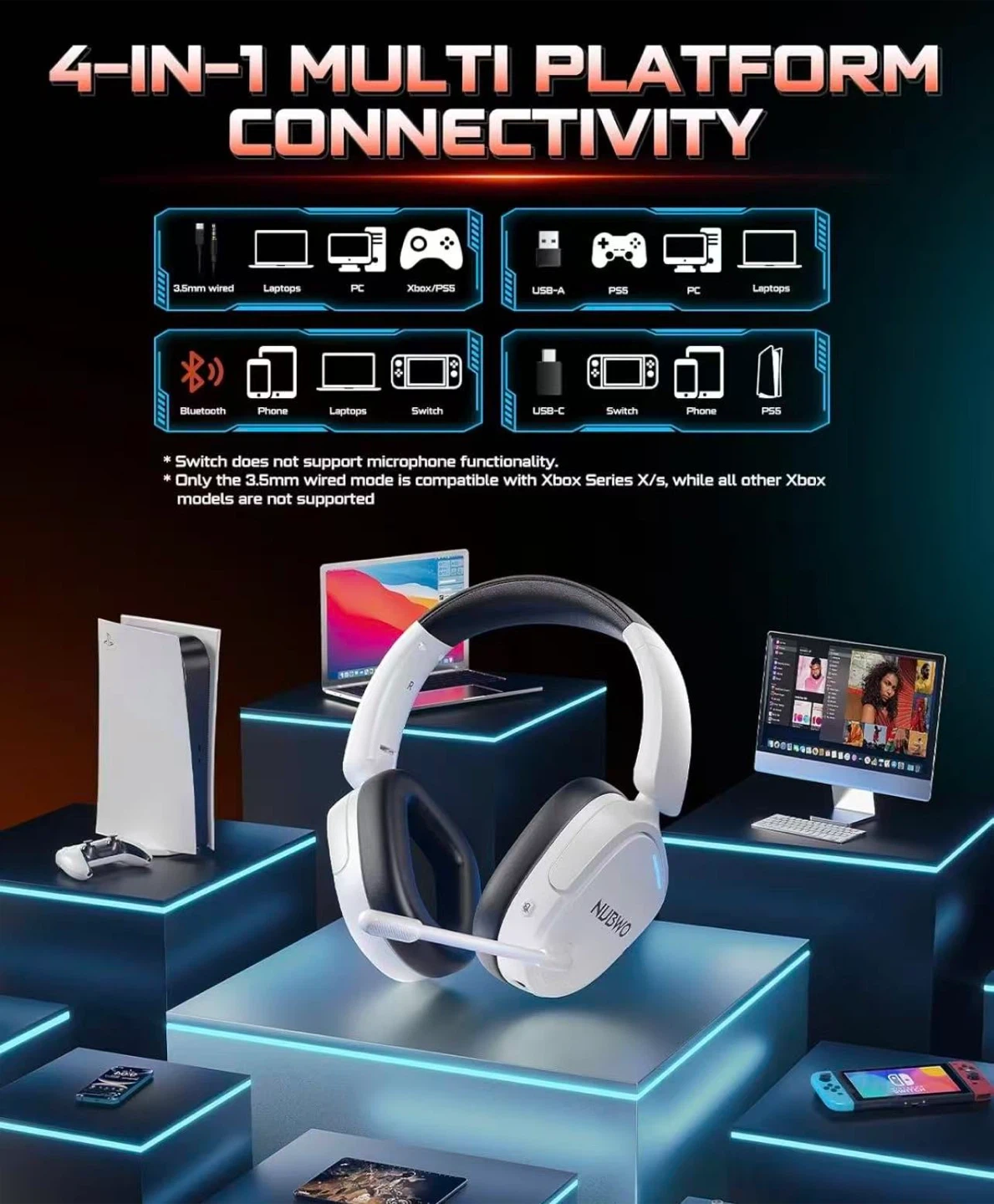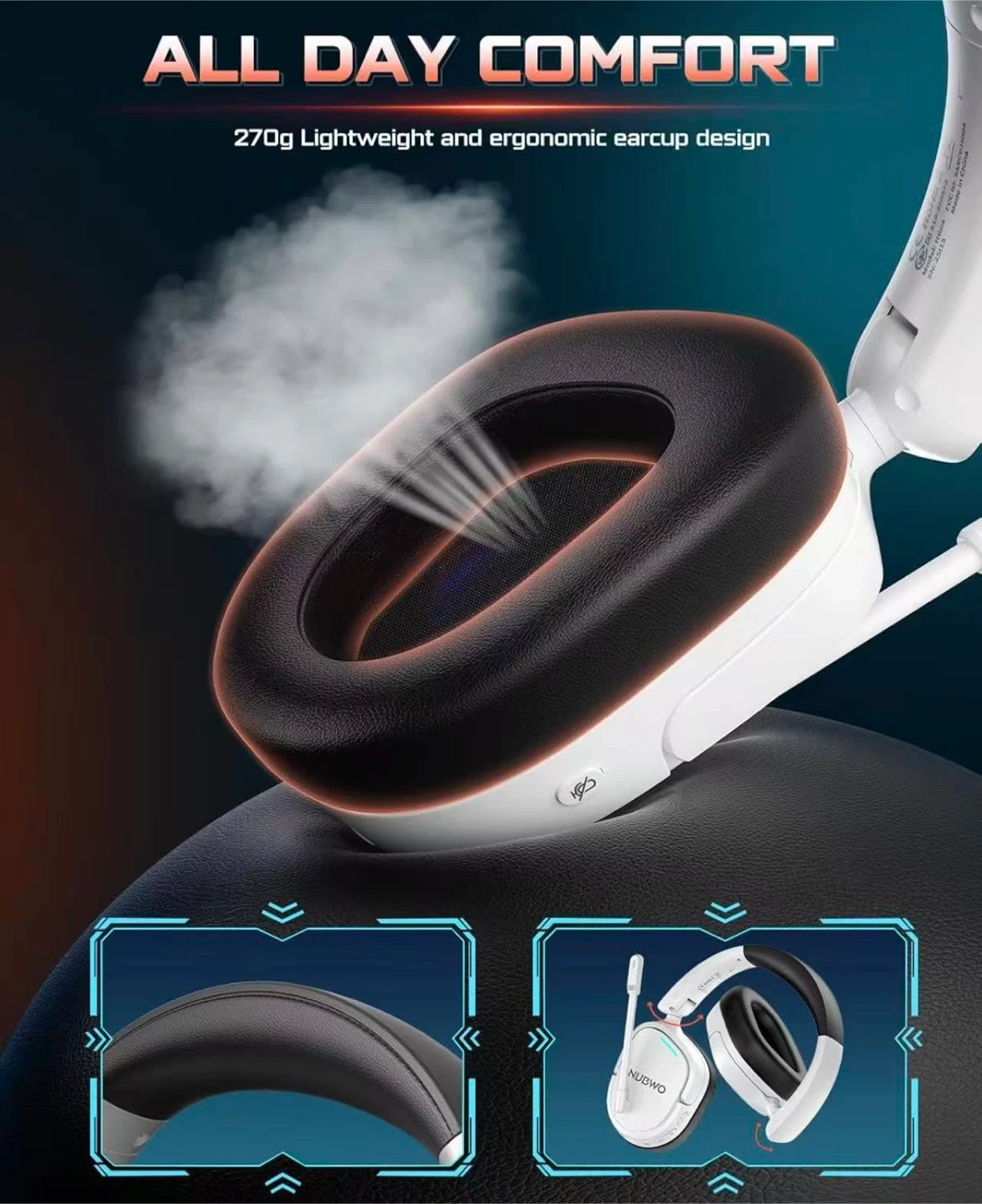 Wireless Gaming Headset for PC, PS5, PS4, Connect to Game & Phone Simultaneously (2.4GHz + Bluetooth), 3 EQ Modes, 50H Battery, PS5 Headset with Mic, Lightweight Foldable Headphones White/Black
